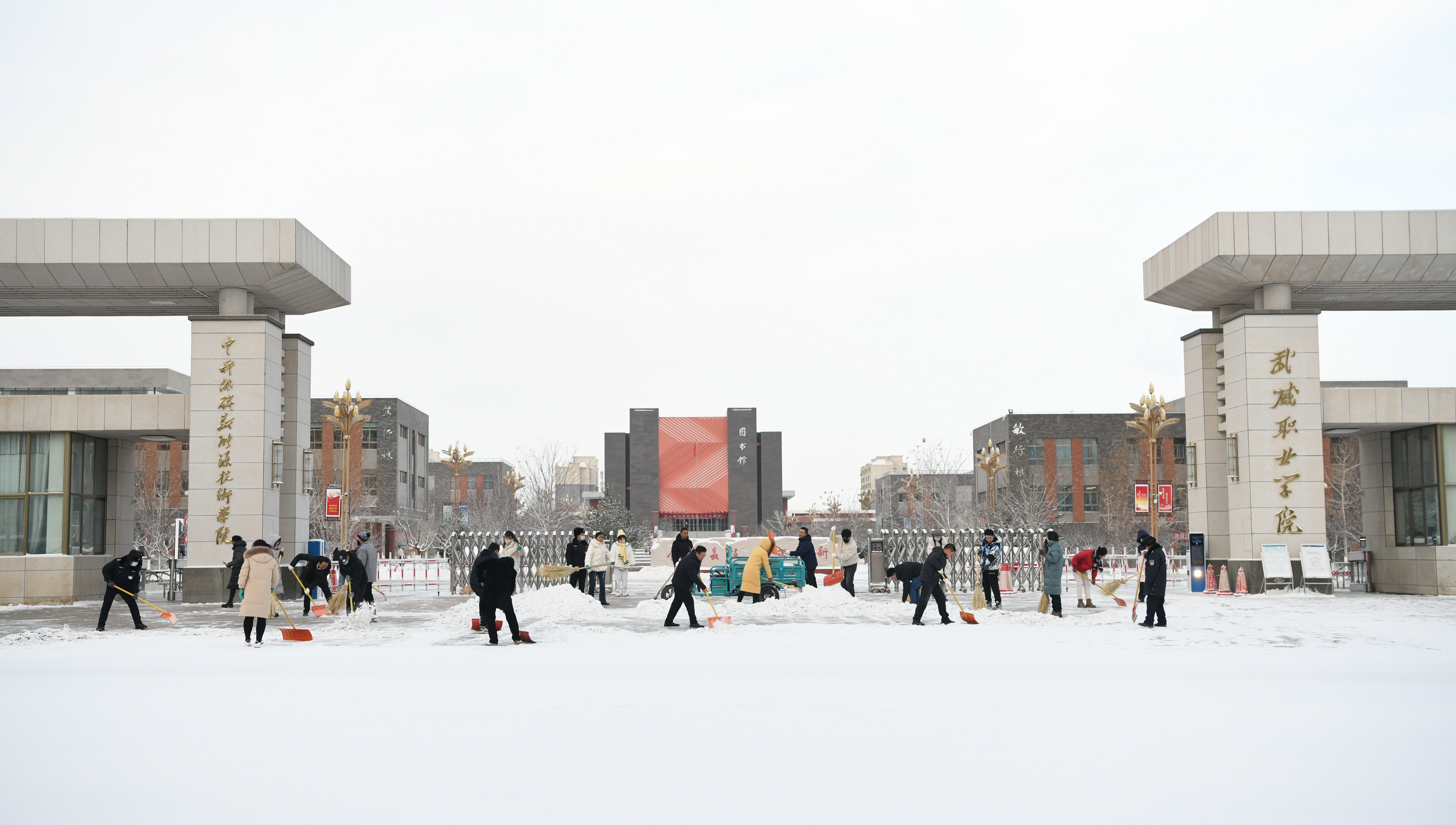 12月14日,我市迎來(lái)了一場(chǎng)大雪。紛紛揚(yáng)揚(yáng)的雪花為美麗的校園披上了潔白的盛裝,也為學(xué)校的出行帶來(lái)了不便。為助力全國(guó)文明城市創(chuàng)建工作,保障全校師生的出行安全和道路暢通。15日清晨,學(xué)校組織行政工作人員開(kāi)展鏟雪除冰志愿服務(wù)活動(dòng)。