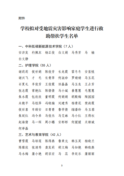 武威職業(yè)學(xué)院關(guān)于對受地震災(zāi)害影響家庭學(xué)生進(jìn)行救助幫扶學(xué)生名單的公示