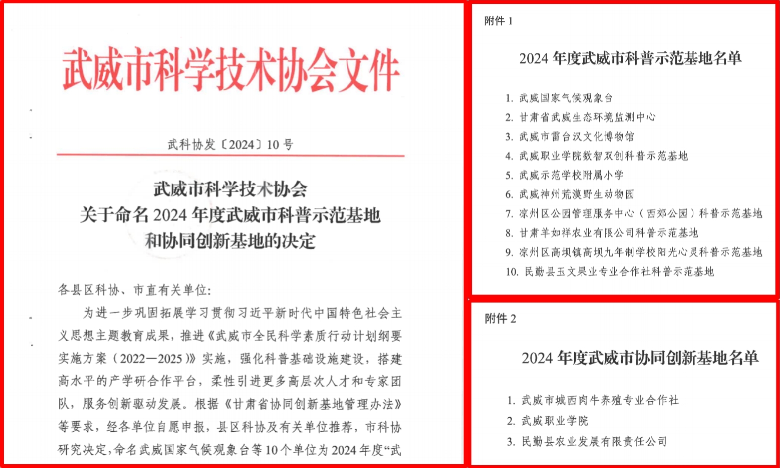 武威職業(yè)學院喜獲2024年武威市科普示范基地和協(xié)同創(chuàng)新基地