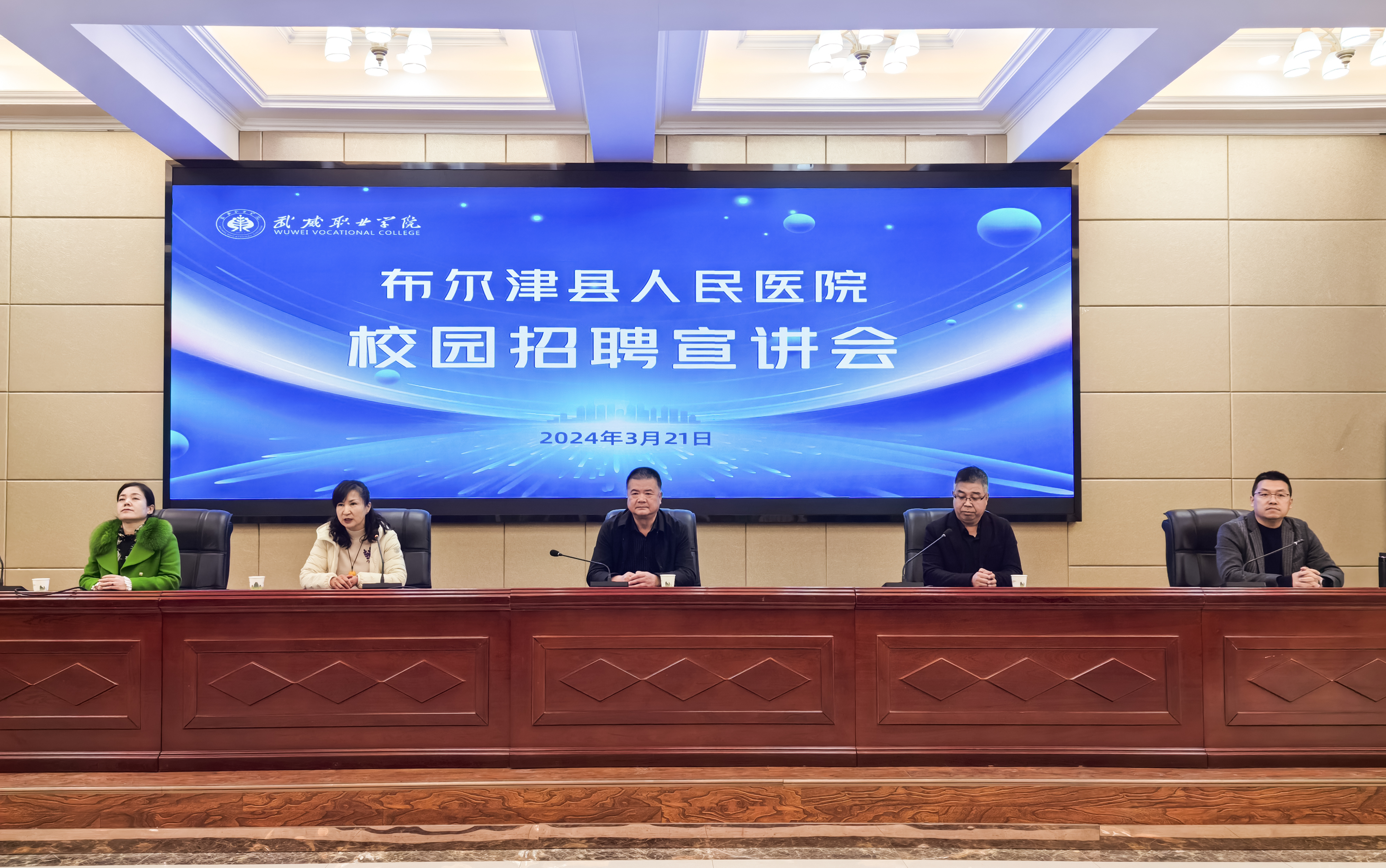 3月21日,布爾津縣人民醫(yī)院護(hù)理部主任何淑紅、重癥醫(yī)學(xué)科護(hù)士長(zhǎng)謝永紅來(lái)我校開(kāi)展校園招聘宣講活動(dòng)。學(xué)校黨委委員、副校長(zhǎng)王守云,學(xué)校招生就業(yè)處、合作教育辦負(fù)責(zé)人董鵬以及護(hù)理學(xué)院負(fù)責(zé)同志參加。