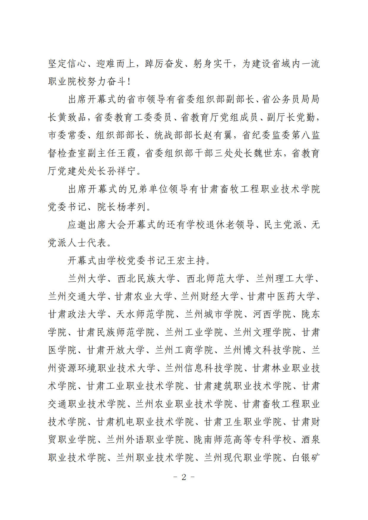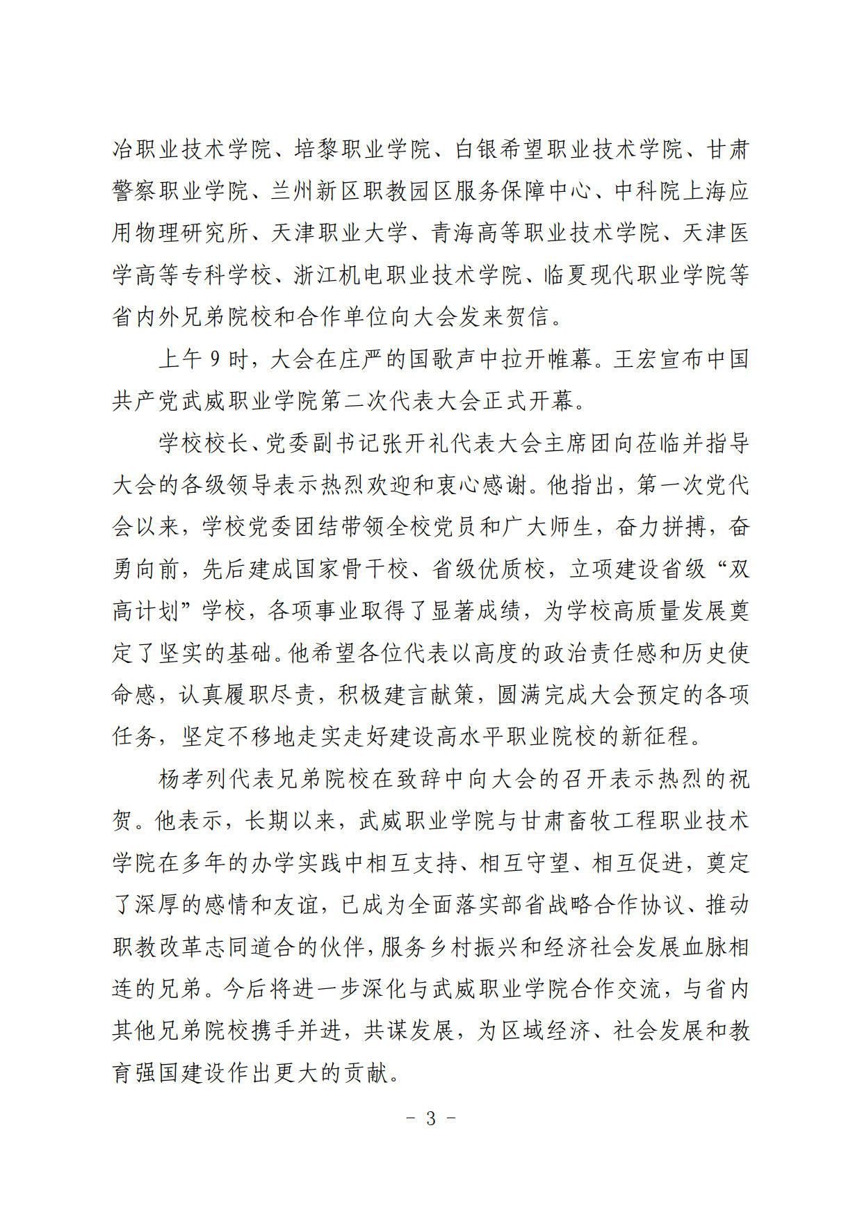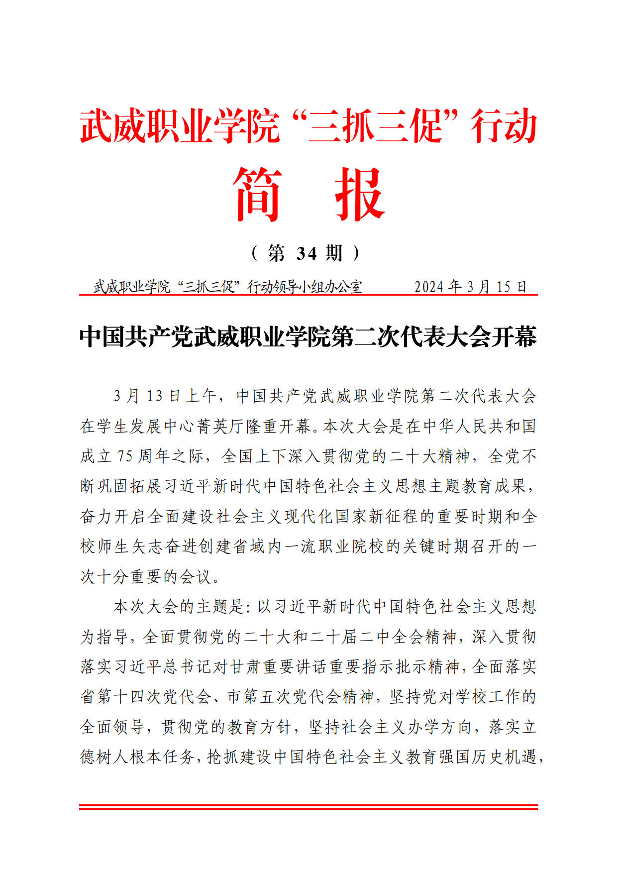 簡報第34期:中國共產(chǎn)黨武威職業(yè)學院第二次代表大會開幕