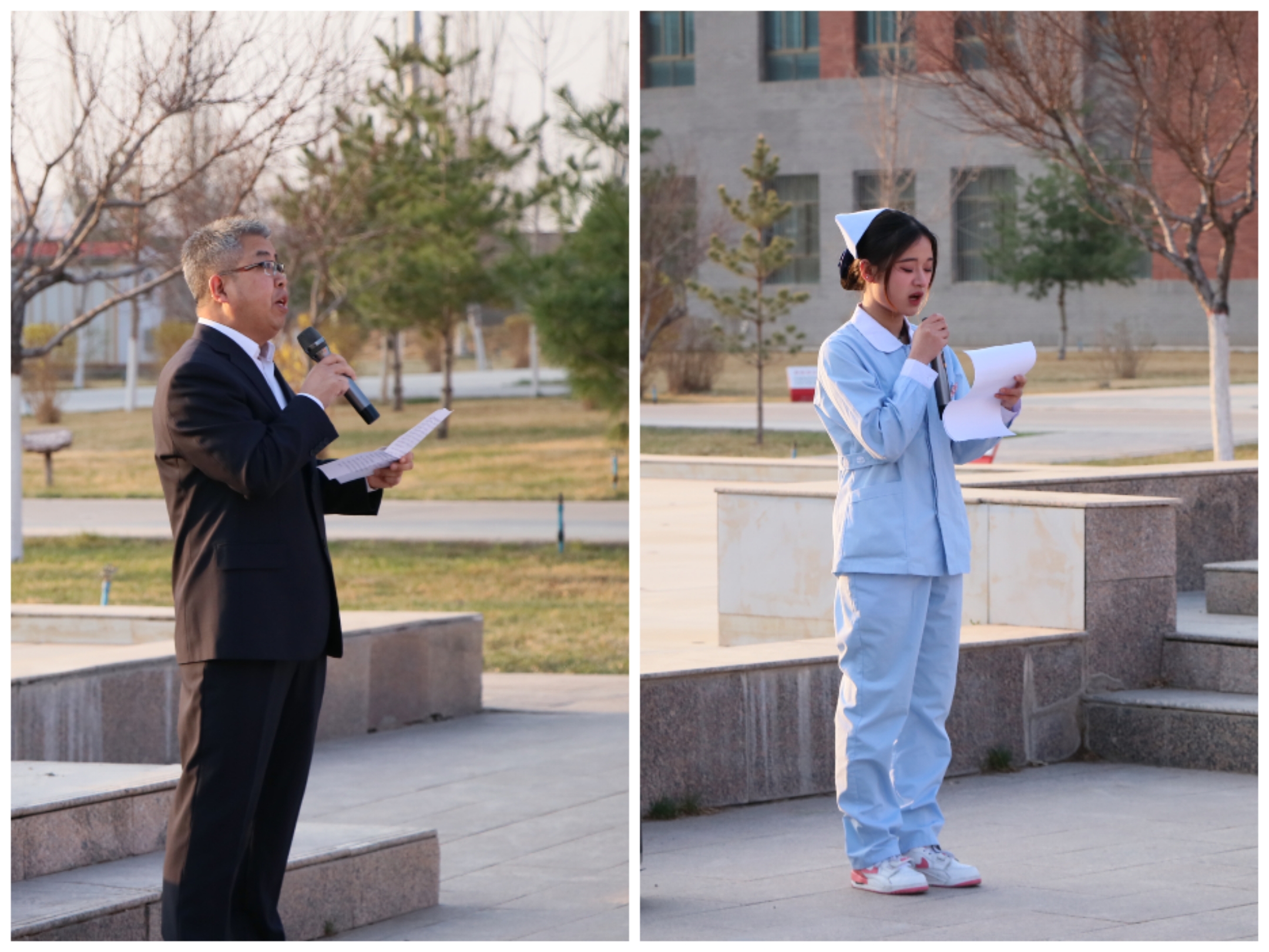 武威職業(yè)學(xué)院張建輝在講話中表示,清明節(jié)是我國(guó)傳統(tǒng)的祭祖節(jié)日,也是緬懷先烈、感恩先人的重要日子,全體師生要銘記先烈們的英勇事跡,傳承他們大無(wú)畏精神,感恩他們的無(wú)私付出。張建輝強(qiáng)調(diào),作為武威職業(yè)學(xué)院護(hù)理專(zhuān)業(yè)的學(xué)生,同學(xué)們更應(yīng)當(dāng)懂得感恩,感恩父母的養(yǎng)育之恩,老師的教誨之恩,感恩學(xué)校的培養(yǎng)之恩,感恩國(guó)家的大愛(ài)之恩,并且將感恩內(nèi)化于心,外化于行、知行合一,用自己的實(shí)際行動(dòng)為他人和社會(huì)創(chuàng)造價(jià)值。