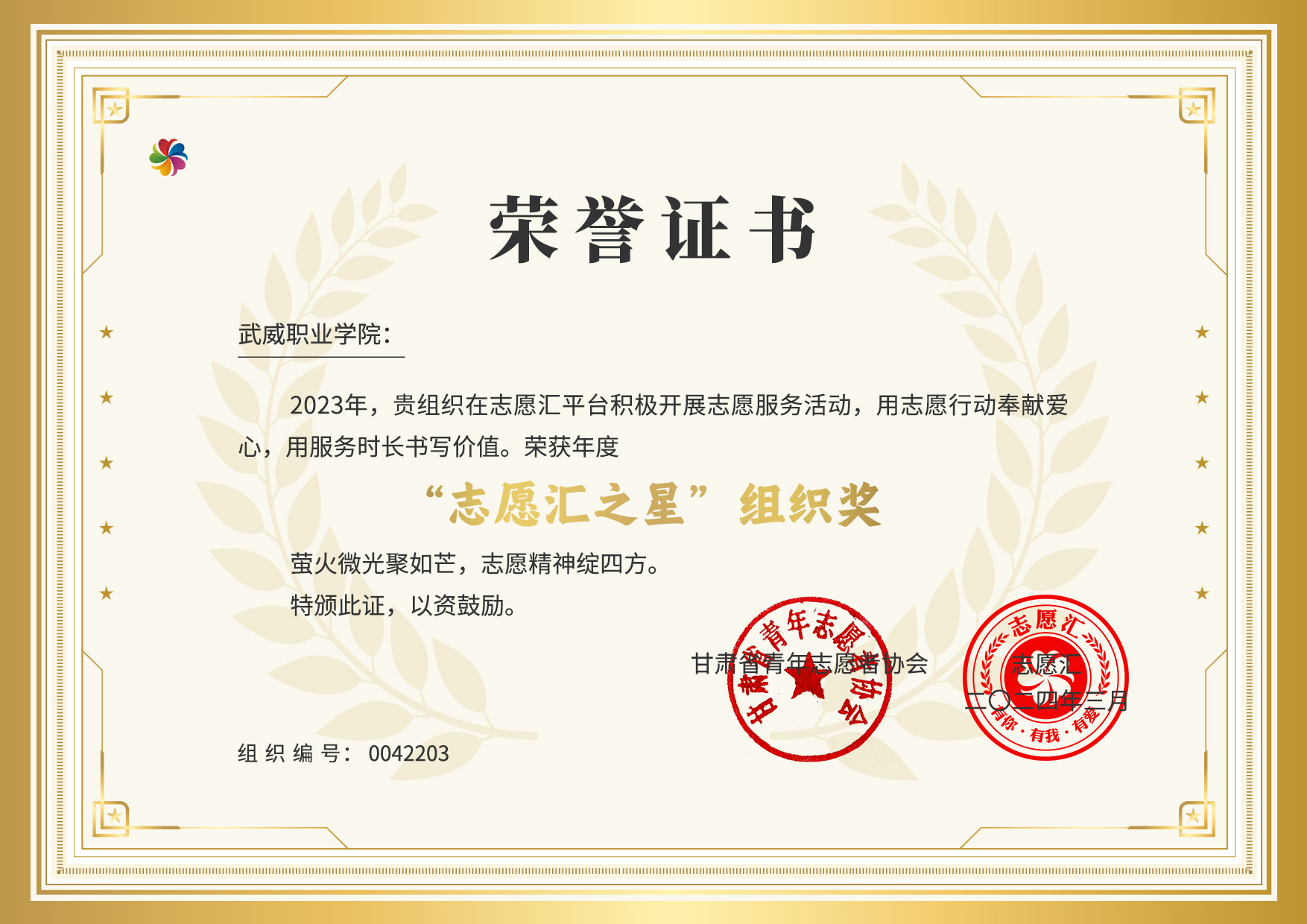 近日,學校青年志愿服務工作再傳喜訊,榮獲2023年度“志愿匯之星”年度組織獎。