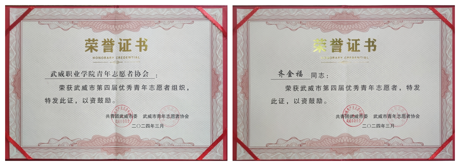 會議全面總結(jié)了2023年全市青年志愿服務(wù)工作情況,對獲得武威市第四屆優(yōu)秀志愿者組織和個人的集體和單位頒發(fā)榮譽證書。我校青年志愿者協(xié)會被評為“優(yōu)秀志愿者組織”,工程技術(shù)學(xué)院學(xué)生齊金福被評為“優(yōu)秀志愿者”。
