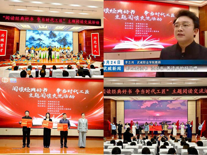 4月23日,由省總工會主辦、市總工會承辦,武威職業(yè)學(xué)院協(xié)辦的“閱讀經(jīng)典好書爭當(dāng)時代工匠”主題讀書交流活動在菁英廳隆重舉行。省總工會三級調(diào)研員馬艷,市總工會黨組書記、常務(wù)副主席康金蓮,學(xué)校黨委副書記翟存祥出席活動。全市職工書屋、便利型職工閱讀站點、勞模書架建設(shè)單位工會負責(zé)人,市、縣區(qū)總工會干部職工230多人參加活動。