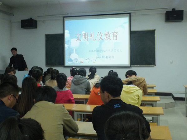 3月31日晚,在藥學(xué)系黨總支的指導(dǎo)下,藥學(xué)系團總支組織各班共青團員共計80余人在2號教學(xué)樓614教室開展了文明禮儀教育活動。