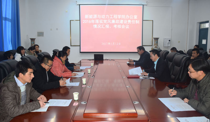 1月12日下午,學(xué)院副院長田迎春帶領(lǐng)學(xué)院第六考核組,對新能源與動力工程學(xué)院辦公室2016年度黨風(fēng)廉政建設(shè)和反腐敗工作進行了全面檢查考核。新能源與動力工程學(xué)院全體教職工參加了會議。
