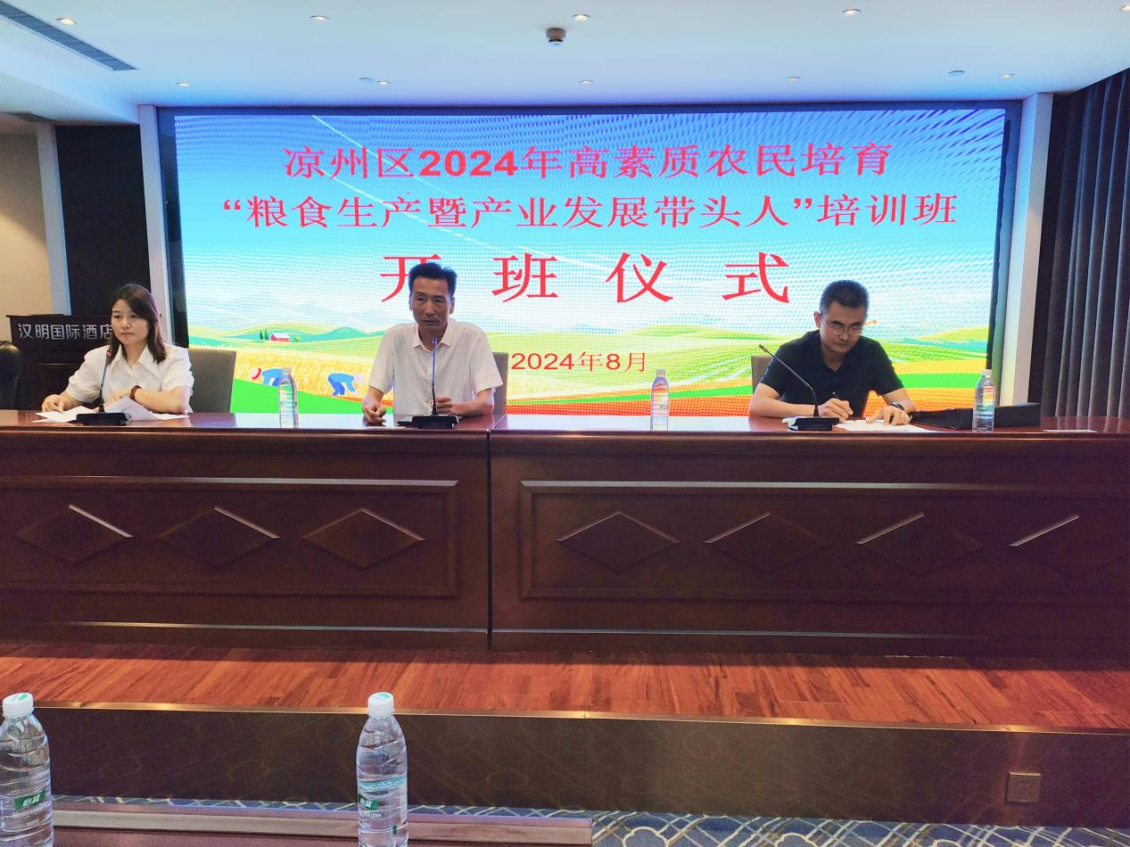 8月14日上午,由涼州區(qū)農(nóng)業(yè)農(nóng)村局主辦,我校承辦的涼州區(qū)2024年高素質(zhì)農(nóng)民培育“糧食生產(chǎn)暨產(chǎn)業(yè)發(fā)展帶頭人”培訓(xùn)班順利開(kāi)班,來(lái)自全區(qū)的100名農(nóng)民學(xué)員參加培訓(xùn)學(xué)習(xí)。
