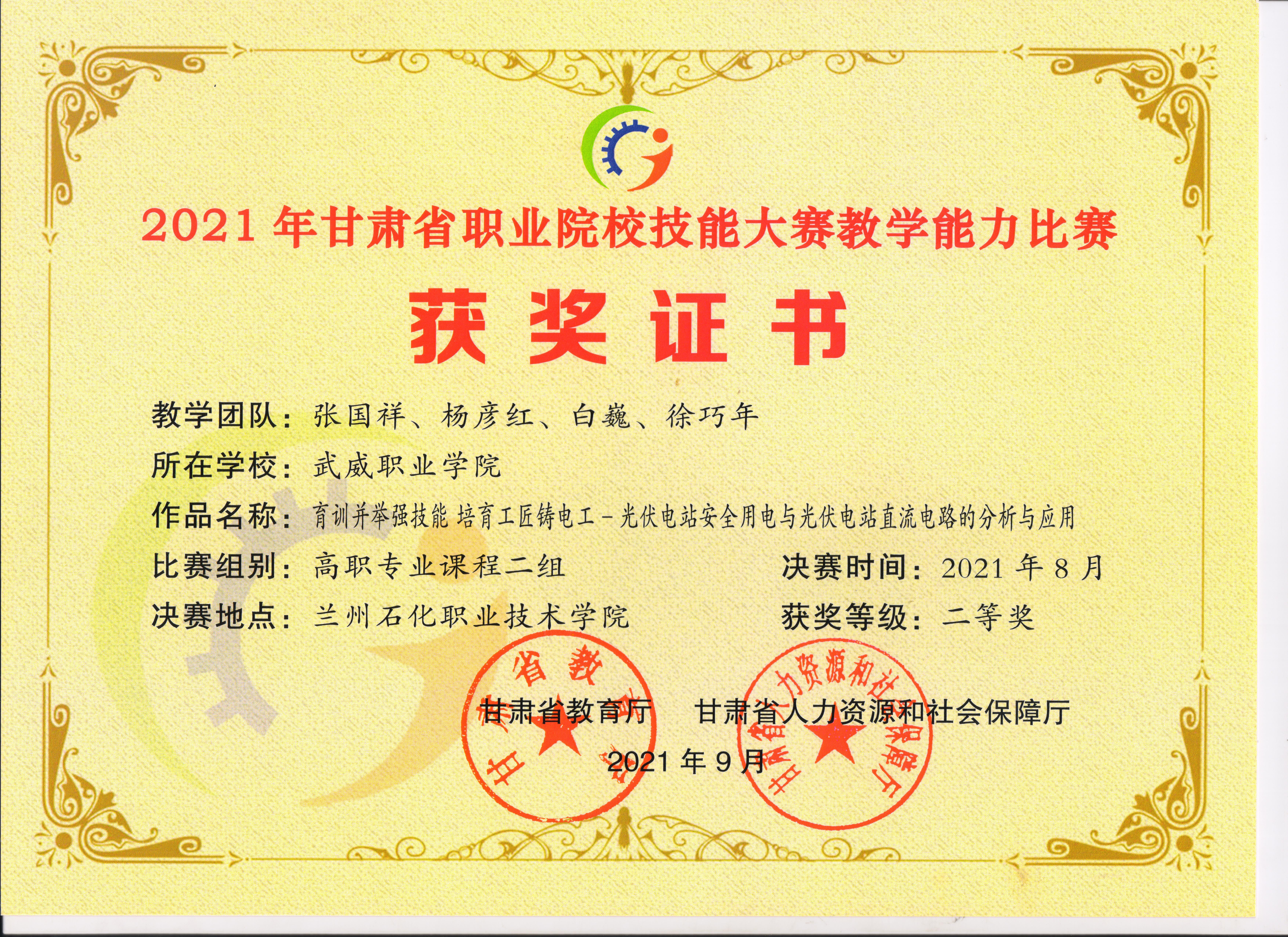 2021年甘肅省職業(yè)院校技能大賽教學能力大賽比賽結果