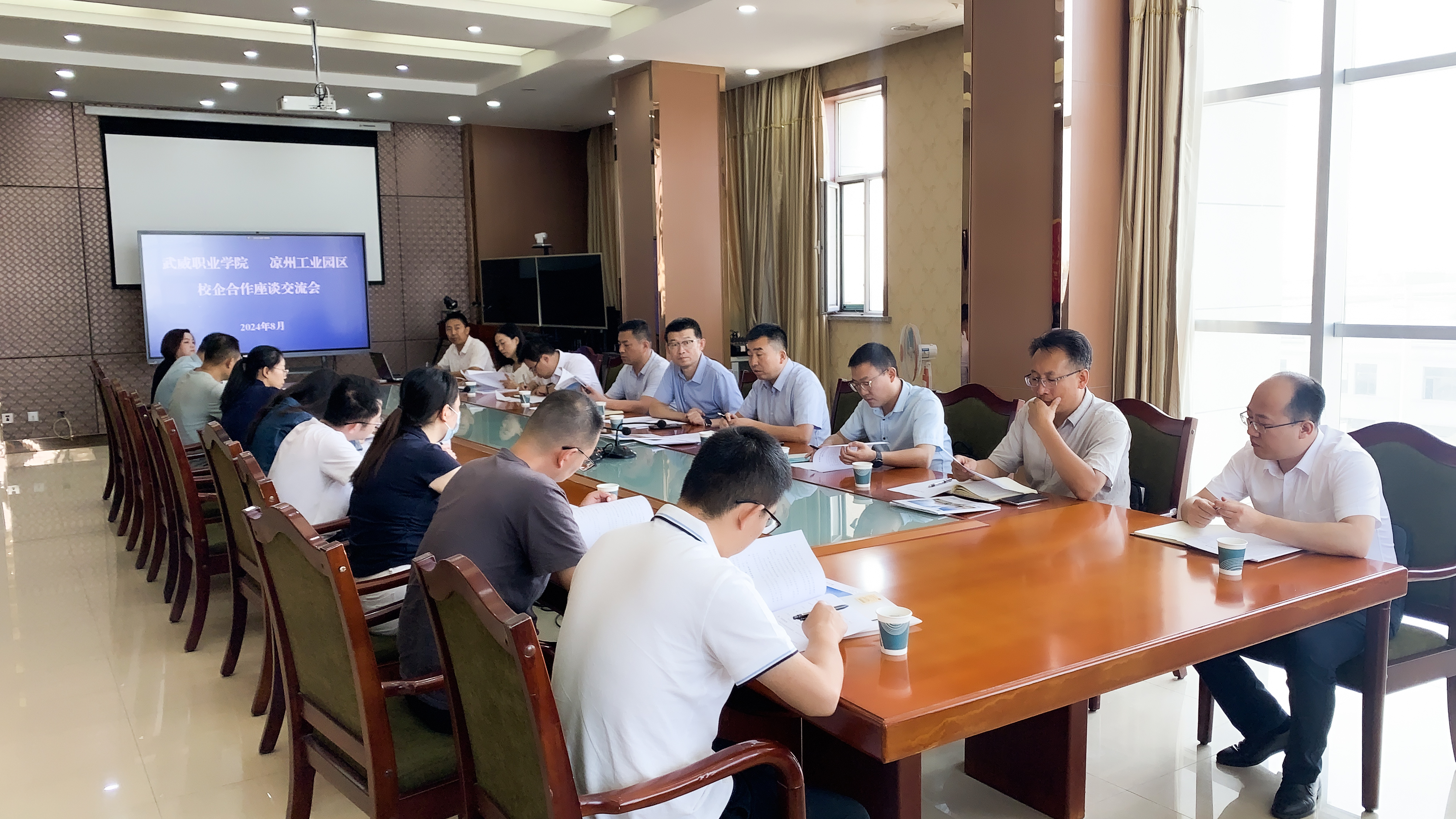 8月29日上午,學(xué)校赴涼州工業(yè)園區(qū)開(kāi)展校企合作洽談。涼州工業(yè)園區(qū)黨工委副書(shū)記、紀(jì)工委書(shū)記楊建先主持座談會(huì),學(xué)校教務(wù)處、招生就業(yè)處、科技處負(fù)責(zé)同志和相關(guān)二級(jí)學(xué)院負(fù)責(zé)同志及園區(qū)內(nèi)16家規(guī)模以上企業(yè)代表參加了座談會(huì)。