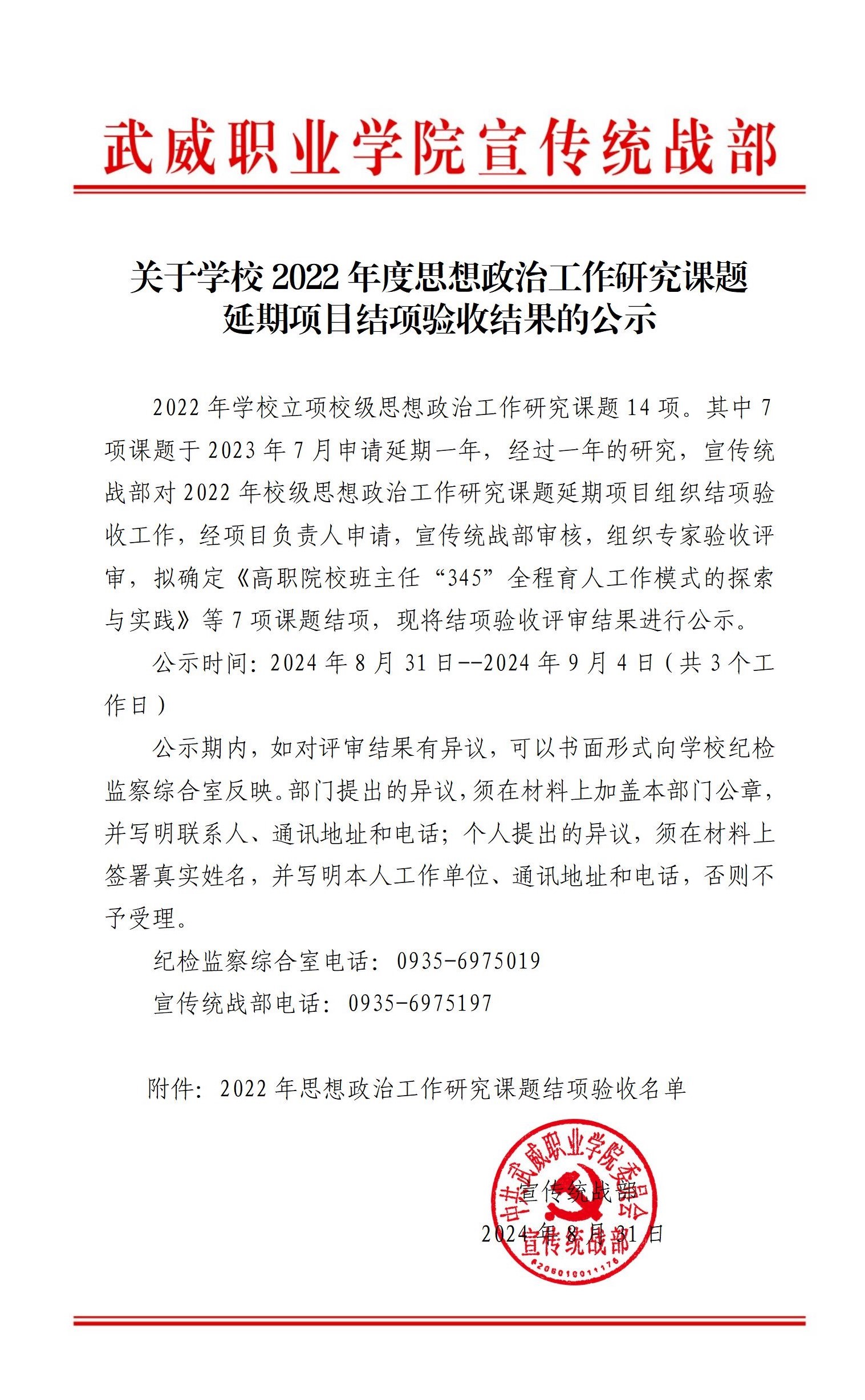關(guān)于學(xué)校2022年度思想政治工作研究課題延期項目結(jié)項驗收結(jié)果的公示