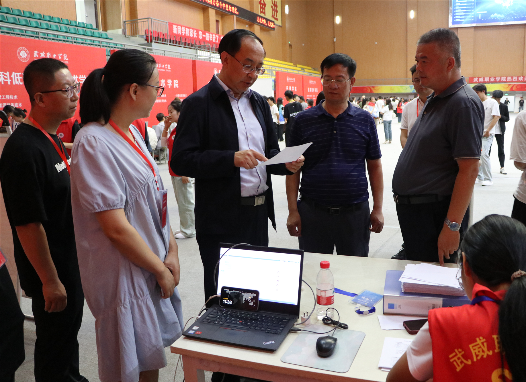 校領(lǐng)導(dǎo)一一走過新生報(bào)到處、綠色通道、繳費(fèi)處和各二級(jí)學(xué)院迎新報(bào)到點(diǎn),了解新生報(bào)到情況,仔細(xì)詢問智慧學(xué)工平臺(tái)使用情況,親切問候堅(jiān)守崗位的師生志愿者。在醫(yī)學(xué)技術(shù)學(xué)院報(bào)到點(diǎn)前,王宏與2024級(jí)放射治療技術(shù)(重離子方向)新生及家長(zhǎng)聊了起來——“歡迎你們來到武威職業(yè)學(xué)院學(xué)習(xí)!為什么會(huì)報(bào)考這個(gè)專業(yè)?”在得知學(xué)生家庭中有人從事重離子醫(yī)療領(lǐng)域的研發(fā)工作時(shí),王宏勉勵(lì)新生要努力學(xué)好專業(yè)、練好技能,爭(zhēng)做高素質(zhì)技術(shù)技能人才。在家長(zhǎng)休息區(qū),王宏與來自甘肅慶陽(yáng)的新生家長(zhǎng)親切交談,并介紹了學(xué)校的辦學(xué)情況,建議學(xué)生和家長(zhǎng)在校園里走一走看一看,多了解熟悉學(xué)校,幫助學(xué)生盡快適應(yīng)大學(xué)生活,并祝愿學(xué)生家長(zhǎng)在武期間,一切順利。