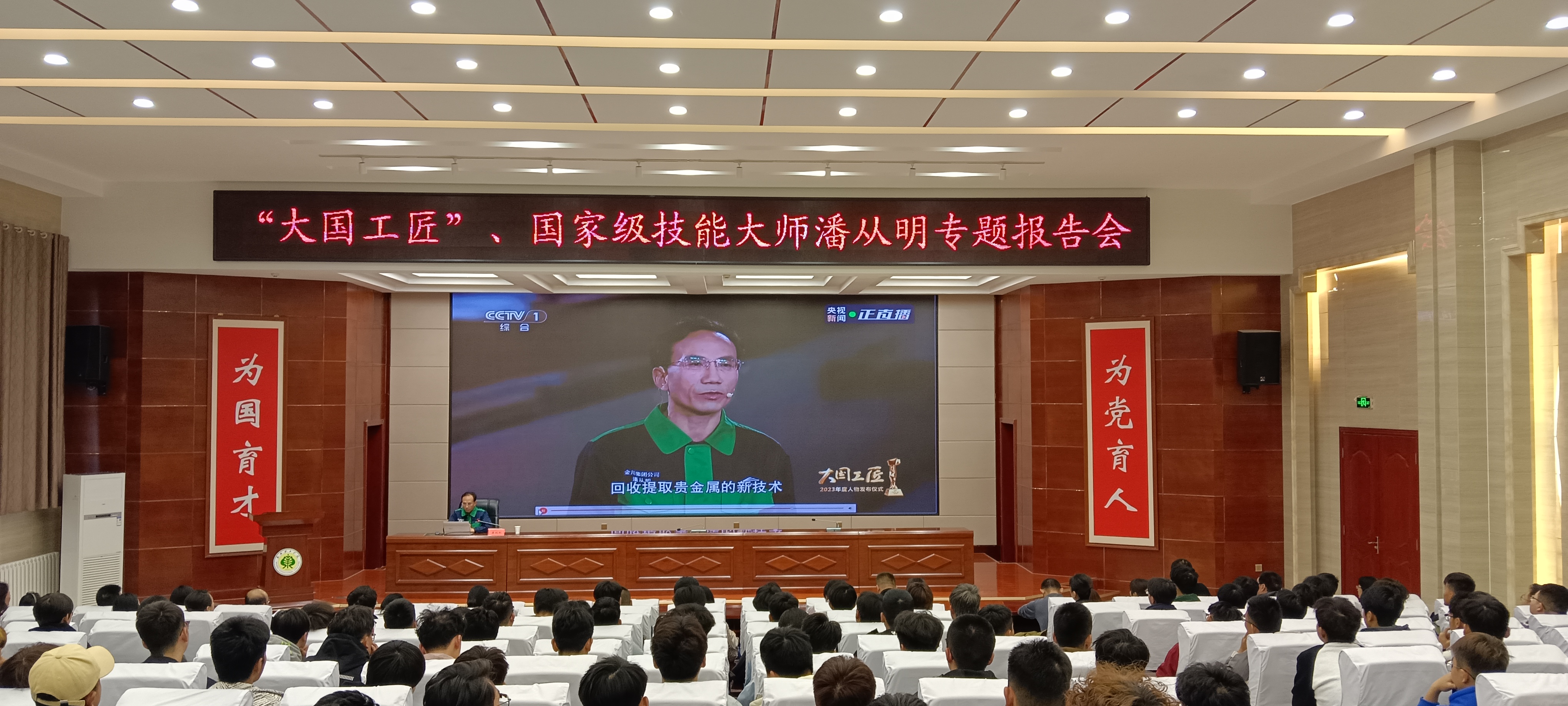 潘從明以“弘揚工匠、勞模精神 勇?lián)聲r代使命”為題,從創(chuàng)新的使命與初心、創(chuàng)新的方法、新員工塑培等方面結合自身工作經歷,分享了從金川公司技校畢業(yè)后,通過自己的不懈努力,完成了從一名學徒到普通工人、高級技師到國家級技能大師,再到大國工匠的跨越。