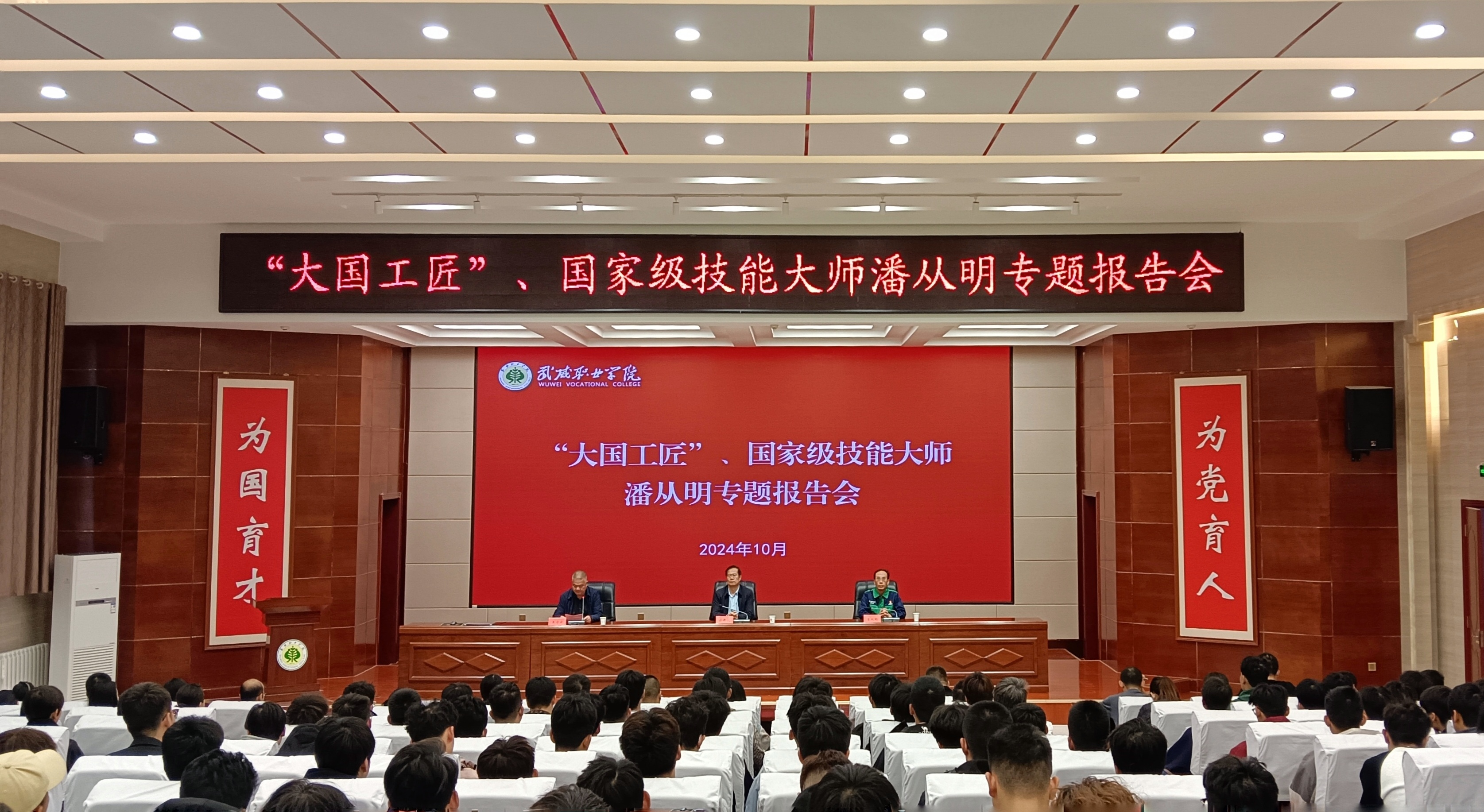 為深入學習貫徹落實習近平總書記關于大力弘揚勞模精神、勞動精神、工匠精神的重要指示精神,充分發(fā)揮廣大勞模以及各行各業(yè)先進人物榜樣的引領作用,努力培養(yǎng)更多的大國工匠、能工巧匠。10月12日,學校邀請“大國工匠”全國勞動模范、全國“五一”勞動獎章獲得者潘從明大師來我校作專題報告。校長、黨委副書記張開禮出席報告會,學校黨委委員、副校長王守云主持報告會。師生代表共計220余人參加了報告會。