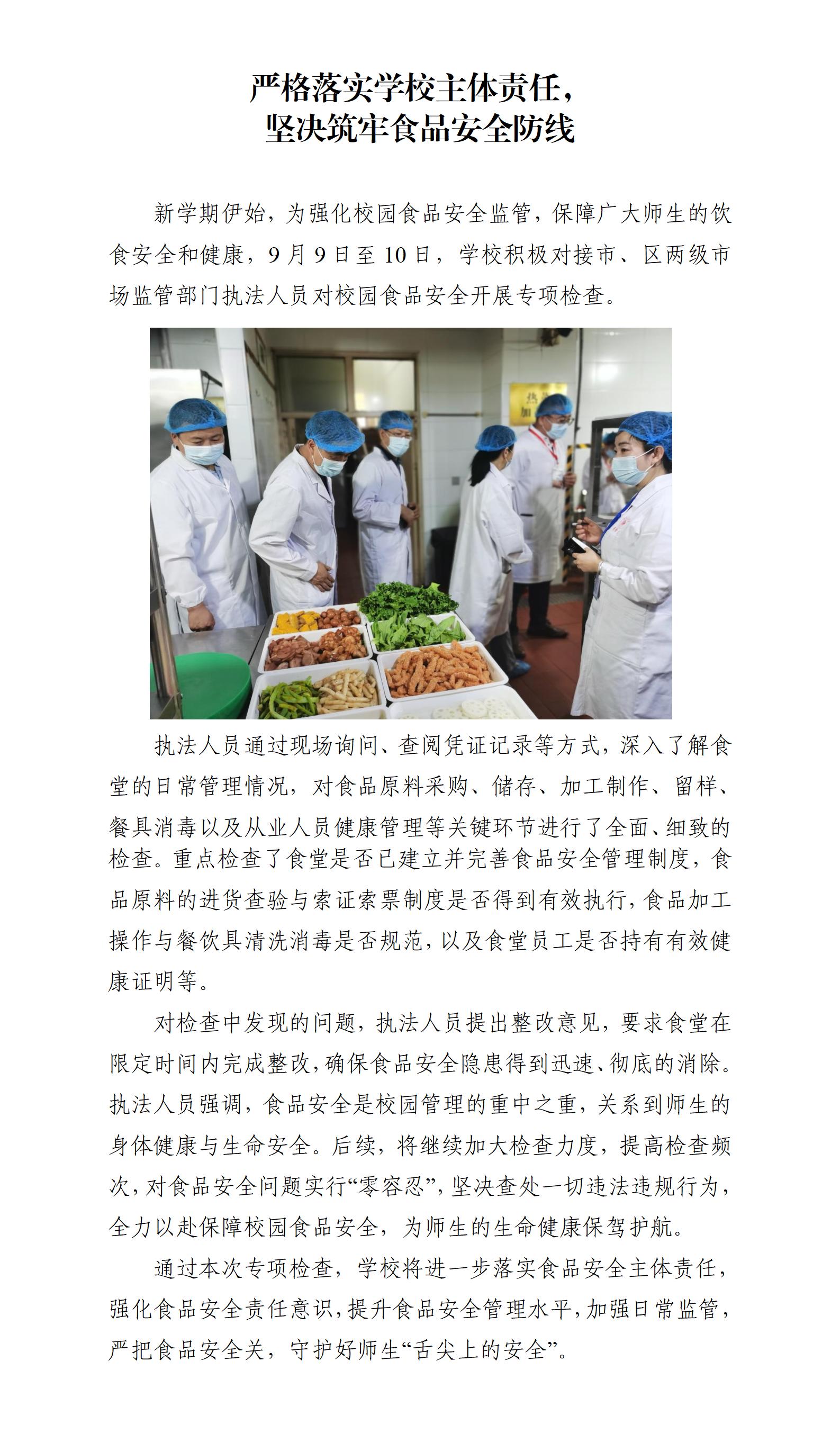嚴(yán)格落實學(xué)校主體責(zé)任,堅決筑牢食品安全防線