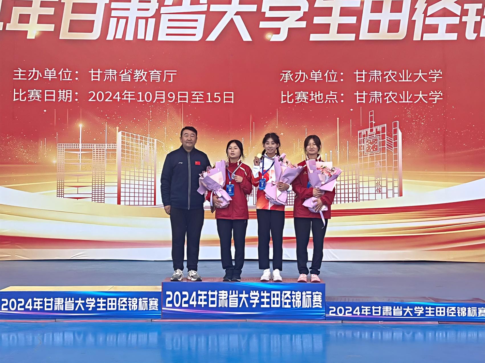 10月9日至15日,由省教育廳主辦的2024年甘肅省大學生田徑錦標賽在甘肅農業(yè)大學舉行。我校運動健兒在比賽中獲得3金、1銀的好成績,13個賽項進入決賽取得名次,2位教練員獲得“優(yōu)秀教練員”,學校榮獲“體育道德風尚獎”,為我校贏得了榮譽。