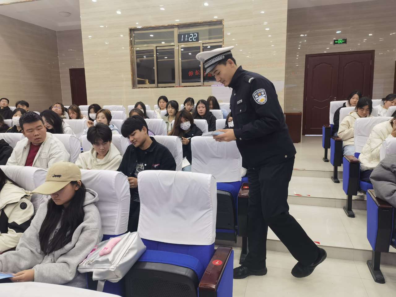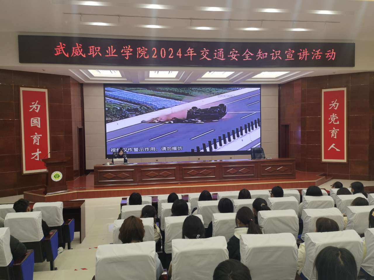 為進一步推進平安校園建設(shè),增強師生的交通安全意識,預(yù)防和減少交通事故的發(fā)生。10月24日,學(xué)校邀請武威市公安局交警支隊王穎警官來學(xué)校開展交通安全知識宣講活動,為師生們帶來了一堂深刻的交通安全警示課。宣講活動由安全保衛(wèi)處處長李欣主持。
