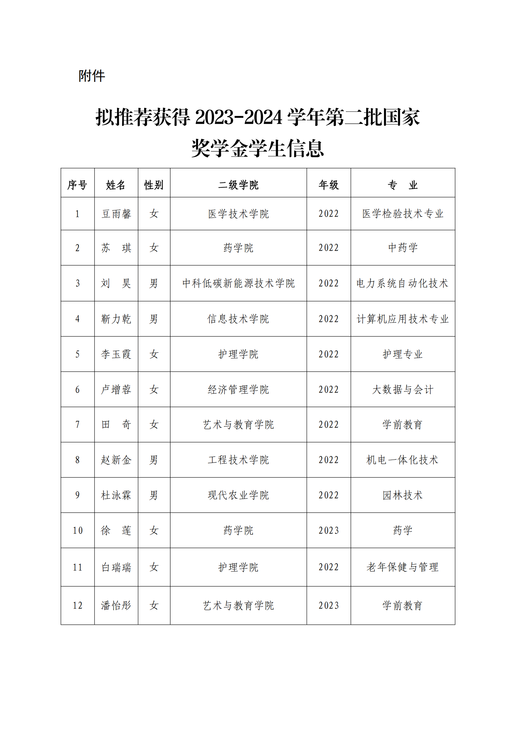 武威職業(yè)學院關(guān)于2023-2024學年第二批國家獎學金擬獲得者的公示