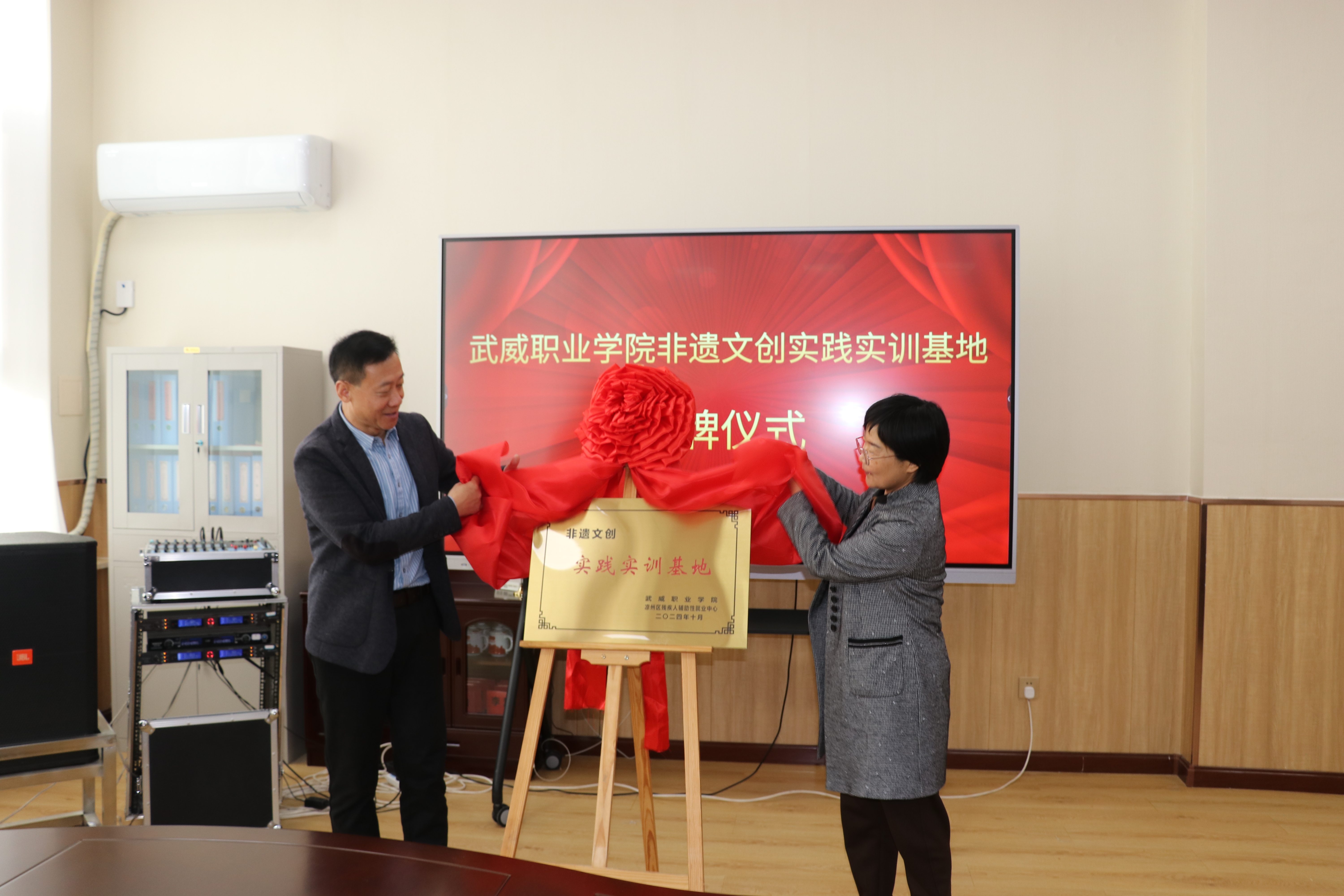 武威職業(yè)學(xué)院非遺文創(chuàng)實(shí)踐實(shí)訓(xùn)基地揭牌儀式在涼州區(qū)輔助性就業(yè)中心舉行