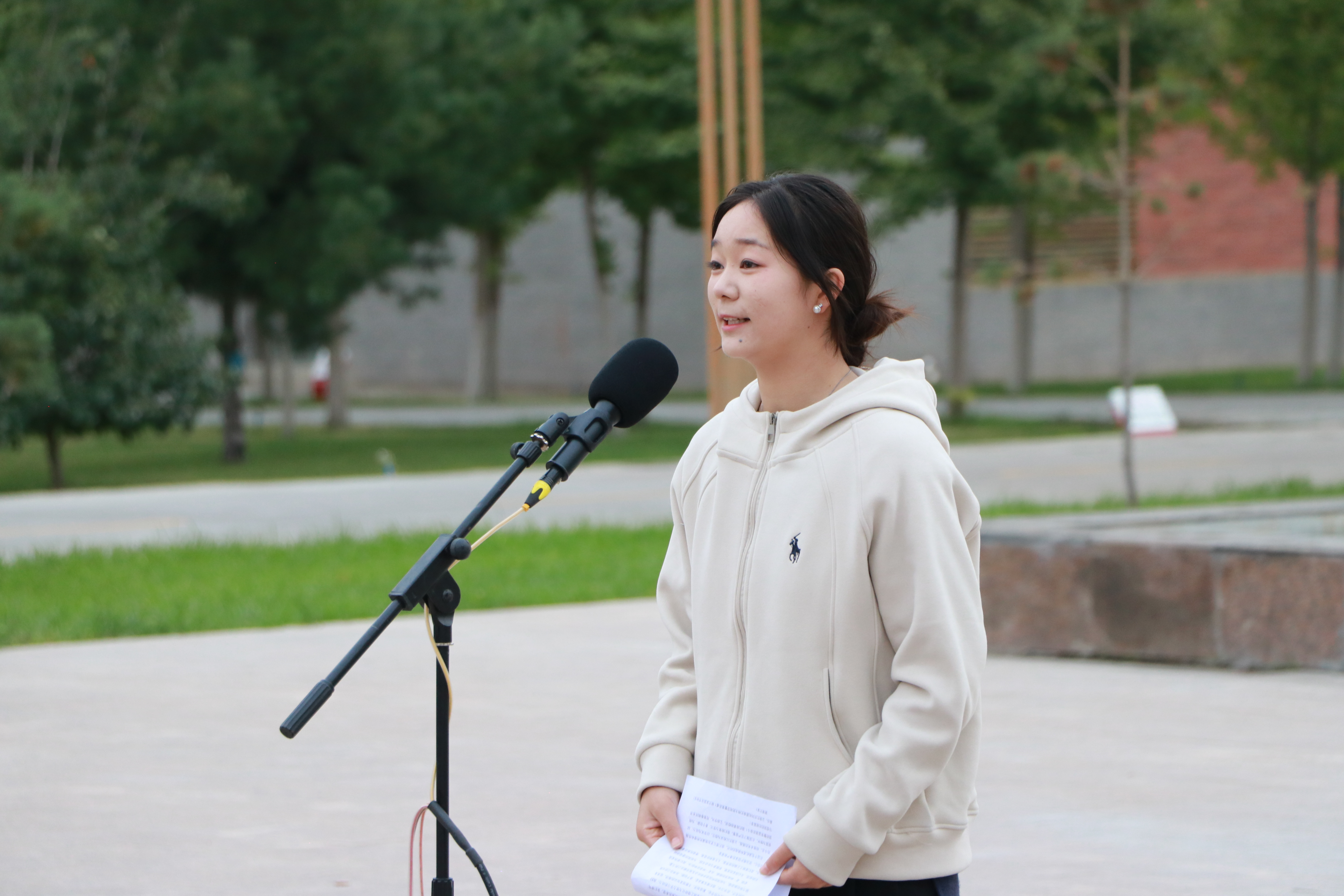 優(yōu)秀學(xué)生代表、藝術(shù)與教育學(xué)院2023級學(xué)前教育專業(yè)的馬青妍同學(xué)進(jìn)行了國旗下的演講,她的演講激勵著在場的每一個人,表達(dá)了對祖國的熱愛和對未來的期許。