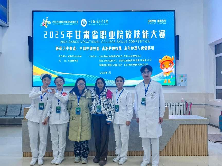 近日,由甘肅省教育廳、人社廳、財政廳等5部門主辦的2025年全省職業(yè)院校技能大賽圓滿閉幕。我院共有5組師生分別參加了臨夏現(xiàn)代職業(yè)學(xué)院賽點醫(yī)藥衛(wèi)生賽道中護理技能與老年護理與保健賽項、甘肅農(nóng)業(yè)職業(yè)技術(shù)學(xué)院賽點公共管理組健康養(yǎng)老照護賽項。
