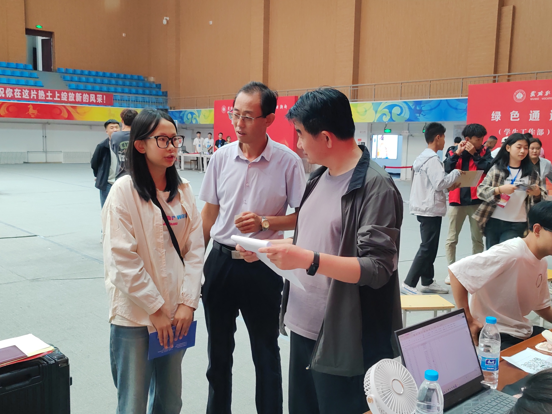 信息技術(shù)學院黨總支書記史子新到迎新現(xiàn)場,了解新生報到情況,慰問迎新工作人員和志愿者,要求工作人員和志愿者要落細落實各項工作,了解新生的適應情況,勉勵新生保持積極樂觀、堅韌不拔的生活態(tài)度,練就過硬的本領(lǐng)報效國家、感恩社會、服務(wù)人民。