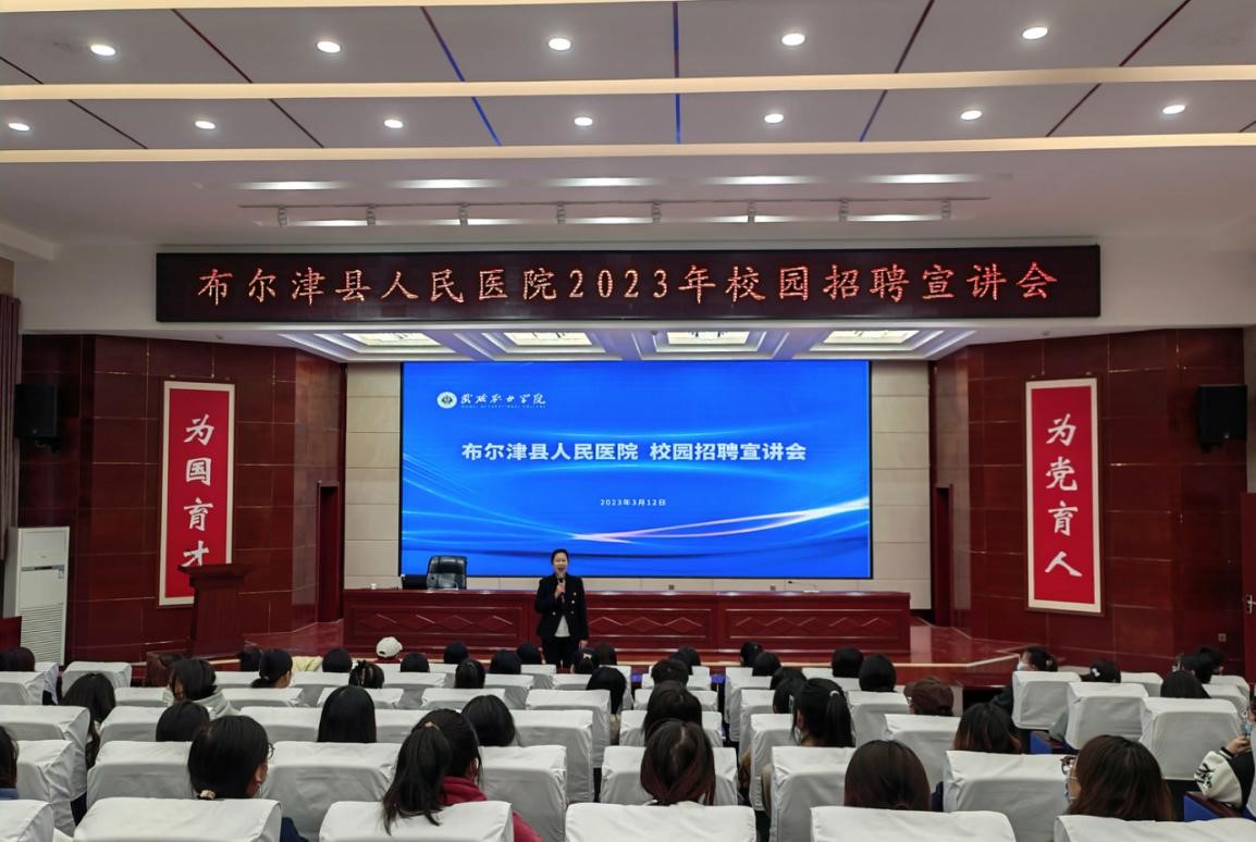 李娟介紹了布爾津縣人民醫(yī)院的基本情況、發(fā)展思路和人才需求,表達了對此次合作的美好祝愿。王守云對李娟一行來?,F(xiàn)場簽約表示了歡迎,也對布爾津縣人民醫(yī)院近年的發(fā)展成果給予了高度評價。雙方表示,希望今后在學生實習實訓、人才培養(yǎng)質(zhì)量、畢業(yè)生實習就業(yè)、教師職業(yè)能力提升等方面加強合作,拓寬合作范圍。簽約儀式結(jié)束后,布爾津縣人民醫(yī)院在學生發(fā)展中心舉行了校園招聘宣講活動,約200名師生參加,部分學生現(xiàn)場達成實習就業(yè)意向。