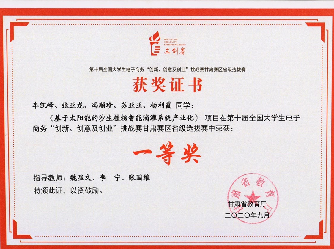 第十屆全國大學(xué)生電子商務(wù)“創(chuàng)新、創(chuàng)意及創(chuàng)業(yè)”挑戰(zhàn)賽甘肅賽區(qū)省級(jí)選拔賽一等獎(jiǎng)