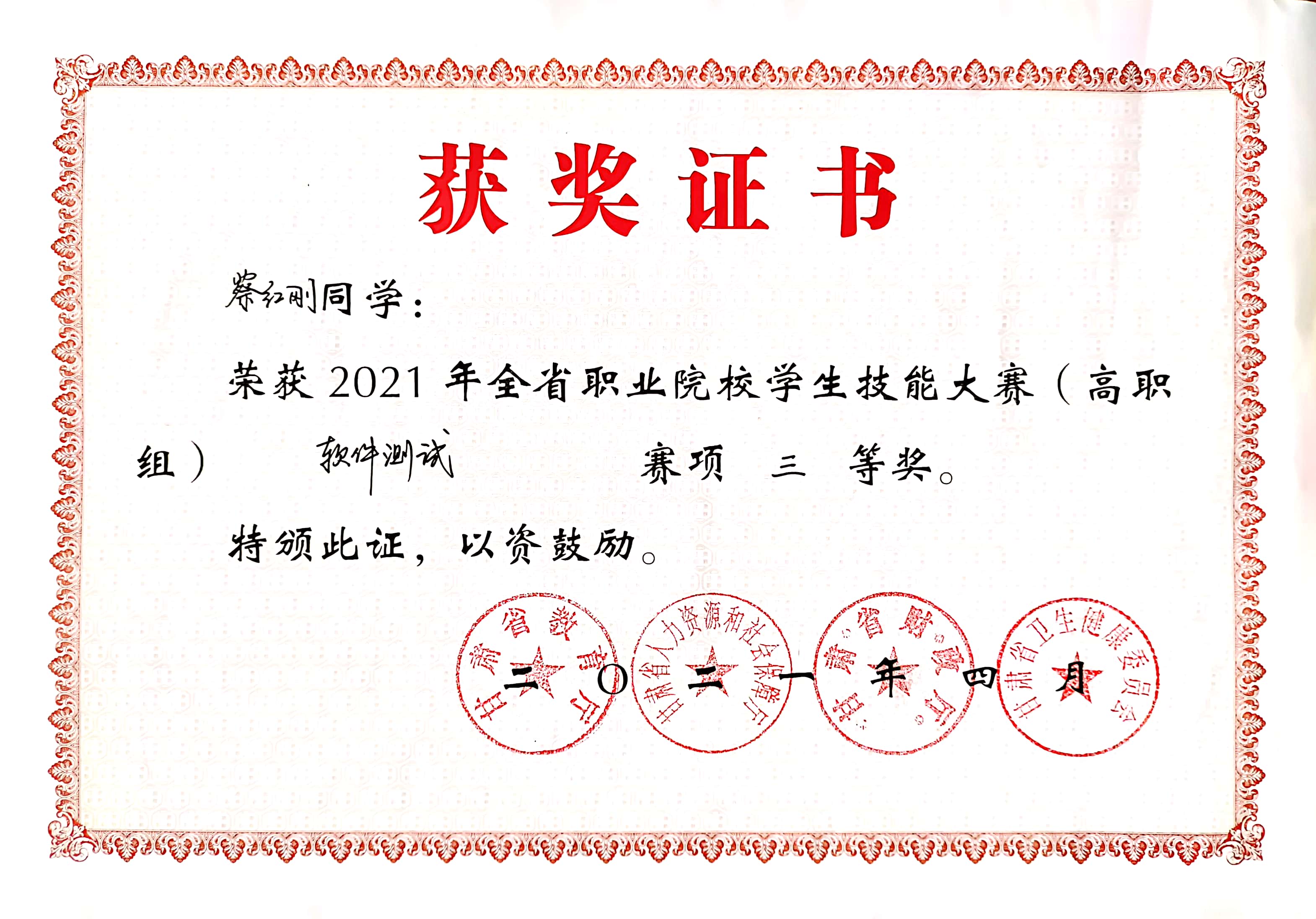 學(xué)生獲2021年全省職業(yè)院校學(xué)生技能大賽軟件測(cè)試…