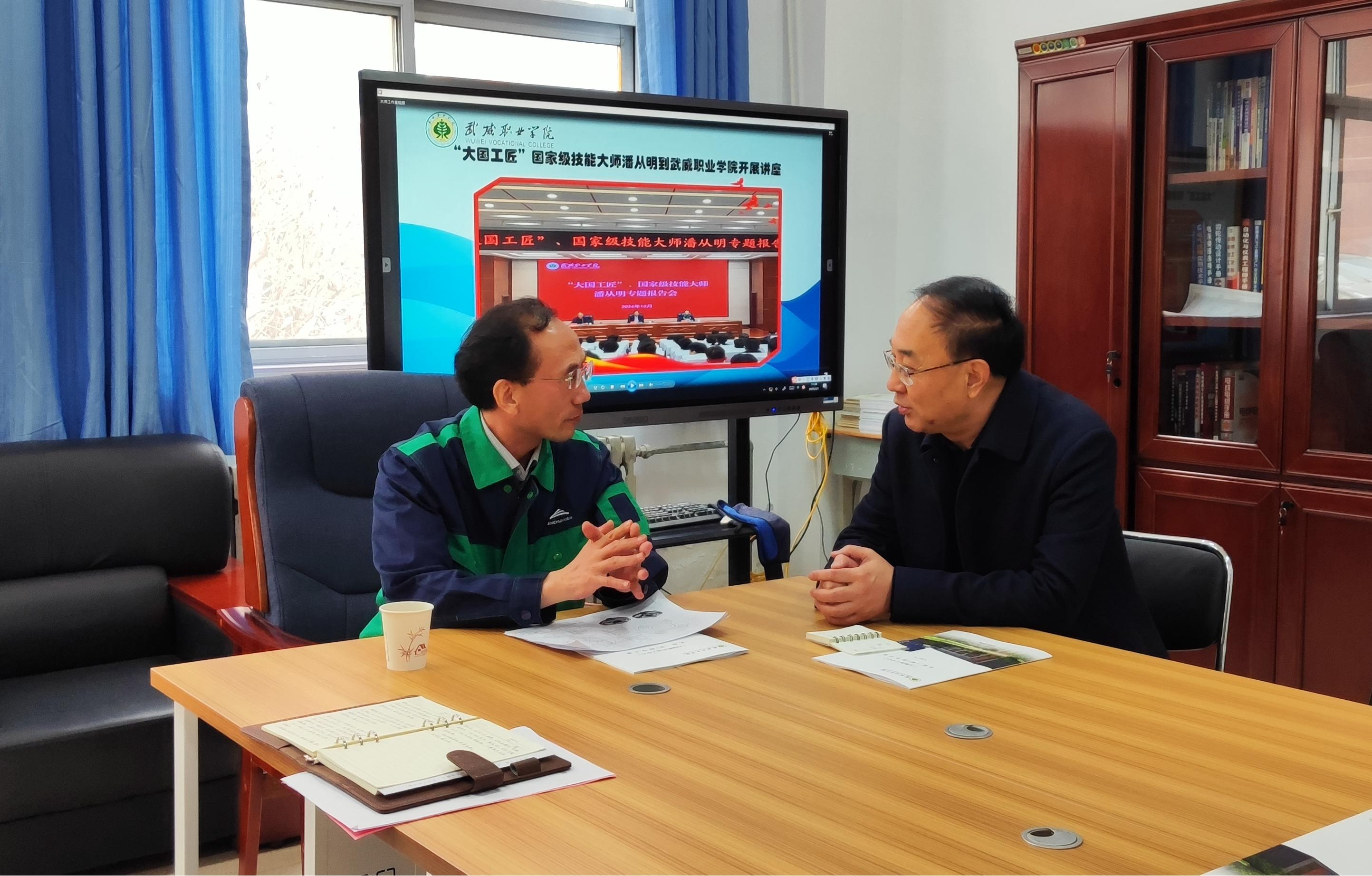 講座后,潘從明來到學(xué)校智能制造實(shí)訓(xùn)中心進(jìn)行現(xiàn)場指導(dǎo),認(rèn)真聽取了實(shí)訓(xùn)中心的實(shí)訓(xùn)場地、實(shí)訓(xùn)裝備、實(shí)訓(xùn)方式等情況,并與校領(lǐng)導(dǎo)及師生代表進(jìn)行了深入交流。他勉勵(lì)師生傳承工匠精神,積極投身實(shí)踐,提高動(dòng)手能力,在實(shí)踐中快速成長為高素質(zhì)技術(shù)技能型人才。