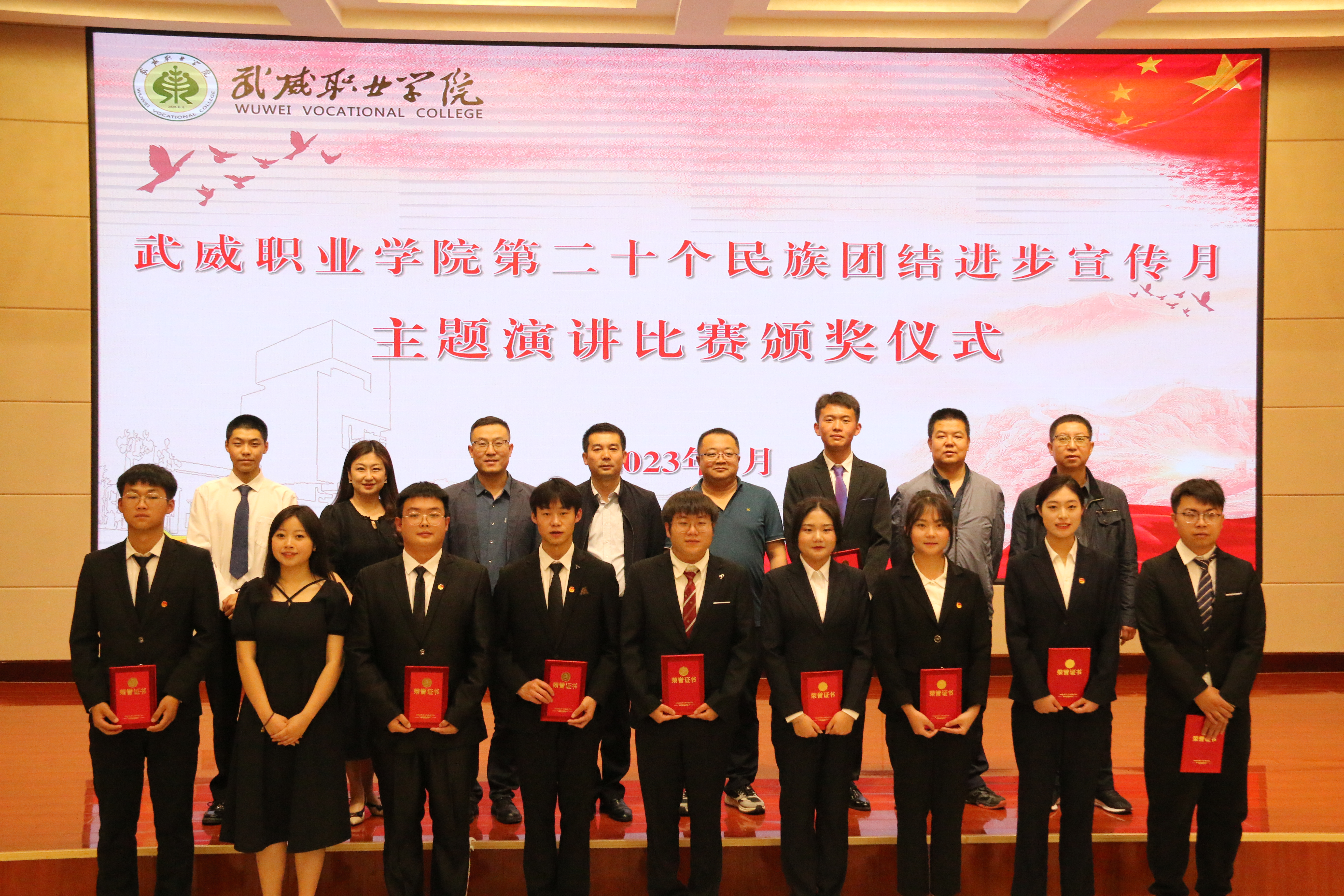 今年5月,是全省第20個(gè)民族團(tuán)結(jié)進(jìn)步宣傳月,為深入貫徹落實(shí)黨的二十大精神和習(xí)近平總書記關(guān)于加強(qiáng)和改進(jìn)民族工作的重要思想,全面落實(shí)中央和省市關(guān)于民族工作的部署要求,5月31日晚,學(xué)校在菁英廳舉行“深入學(xué)習(xí)宣傳貫徹黨的二十大精神,有形有感有效鑄牢中華民族共同體意識(shí)”主題演講比賽。各二級(jí)學(xué)院輔導(dǎo)員、師生代表200余人參加活動(dòng)。