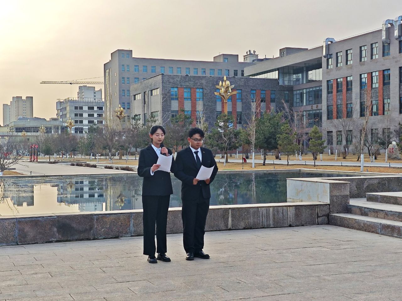 ?2025年3月31日早上,藥學(xué)院全體師生在圖書館前廣場舉行升國旗儀式。