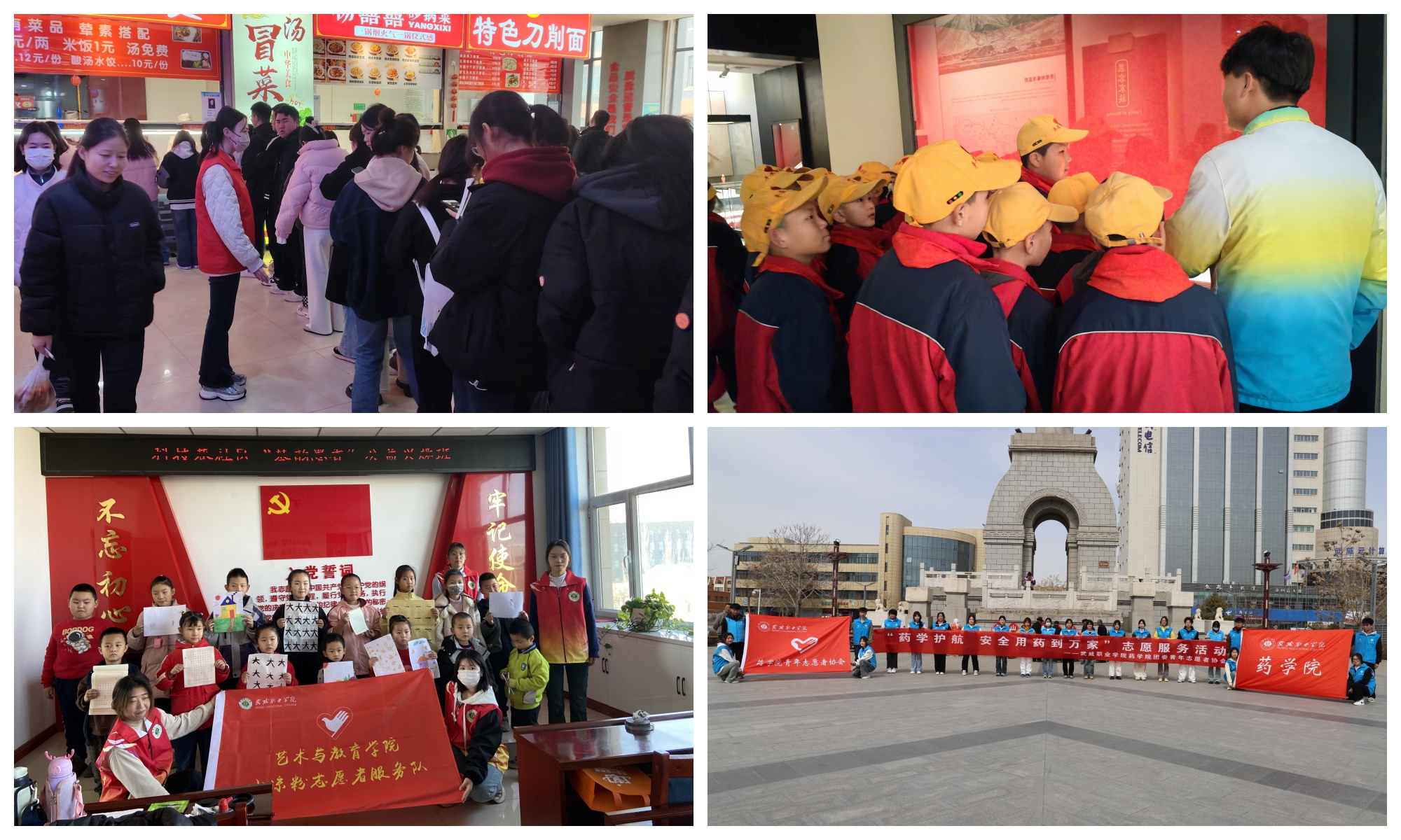 結(jié)合專業(yè)特色,開展志愿服務(wù)活動(dòng)。3月5日,現(xiàn)代農(nóng)業(yè)學(xué)院20余名志愿者在學(xué)校餐廳開展“食安校園 你我同行”志愿服務(wù)活動(dòng),普及食品安全科學(xué)知識(shí)。3月5日,經(jīng)濟(jì)管理學(xué)院組織旅游管理專業(yè)志愿者走進(jìn)博物館,向前來(lái)參觀的游客義務(wù)講解。3月15日,藝術(shù)與教育學(xué)院學(xué)前教育專業(yè)志愿者走進(jìn)科技巷社區(qū),為留守兒童帶去豐富的興趣活動(dòng),激發(fā)小朋友們對(duì)唱歌、舞蹈、書法、樂(lè)器演奏等特長(zhǎng)的學(xué)習(xí)熱情。3月20日,醫(yī)學(xué)技術(shù)學(xué)院開展口腔衛(wèi)生健康宣傳志愿服務(wù)活動(dòng),倡議改善刷牙習(xí)慣,注重口腔健康。3月22日,藥學(xué)院志愿者在文化廣場(chǎng)開展“藥學(xué)護(hù)航,安全用藥到萬(wàn)家”志愿服務(wù)活動(dòng),為市民們科普正確用藥知識(shí),講解安全用藥和藥品保存常識(shí),通過(guò)發(fā)放宣傳資料、現(xiàn)場(chǎng)講解等方式,詳細(xì)介紹藥品回收的重要意義。