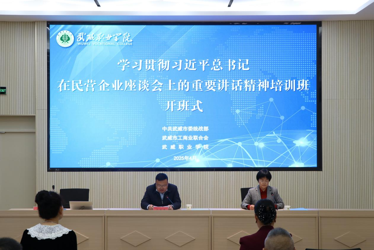 4月28日,由市委統(tǒng)戰(zhàn)部、市工商業(yè)聯(lián)合會(huì)主辦,我校承辦的深入學(xué)習(xí)貫徹習(xí)近平總書記在民營(yíng)企業(yè)座談會(huì)上的重要講話精神培訓(xùn)班在學(xué)校圖書館二樓報(bào)告廳順利開班。市委統(tǒng)戰(zhàn)部副部長(zhǎng)、市工商聯(lián)黨組書記、常務(wù)副主席白生光,學(xué)校黨委委員、副校長(zhǎng)何毅出席開班式。市級(jí)各商會(huì)組織負(fù)責(zé)人、全市民營(yíng)經(jīng)濟(jì)代表人士、市縣區(qū)黨委統(tǒng)戰(zhàn)部、工商聯(lián)代表共40人參加培訓(xùn)。
