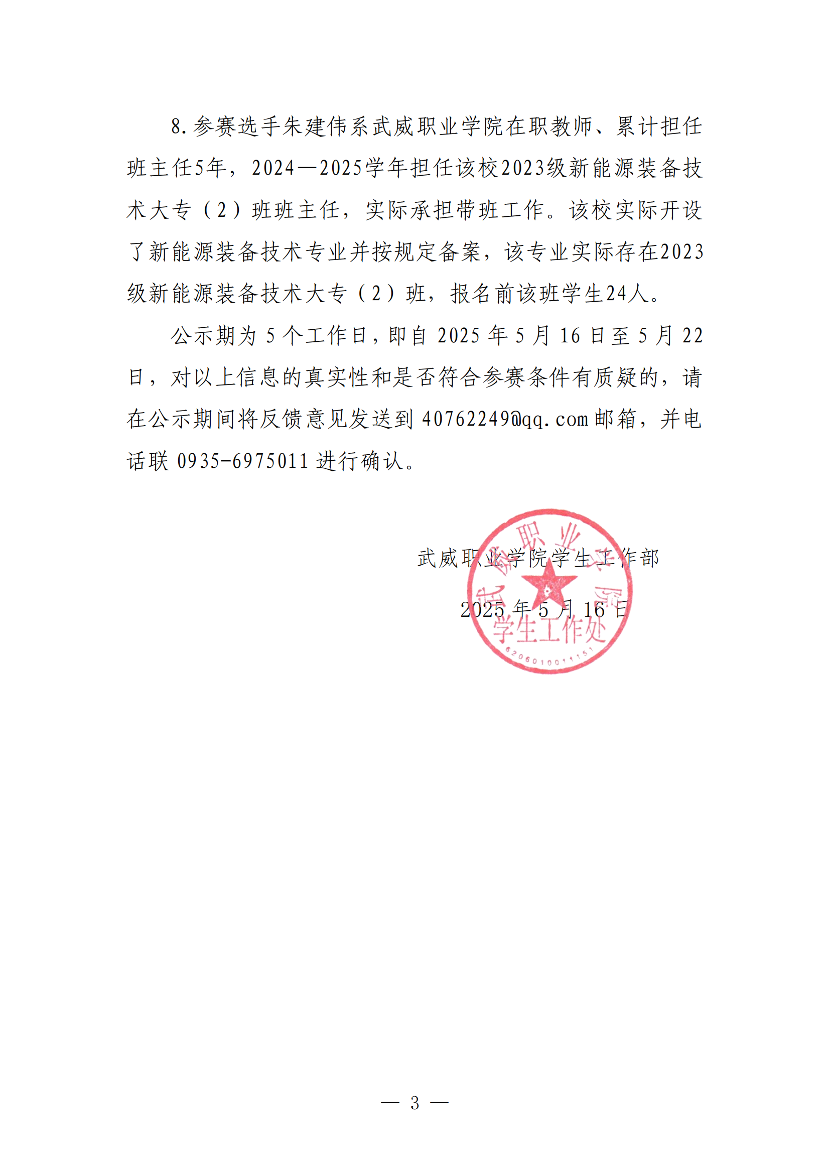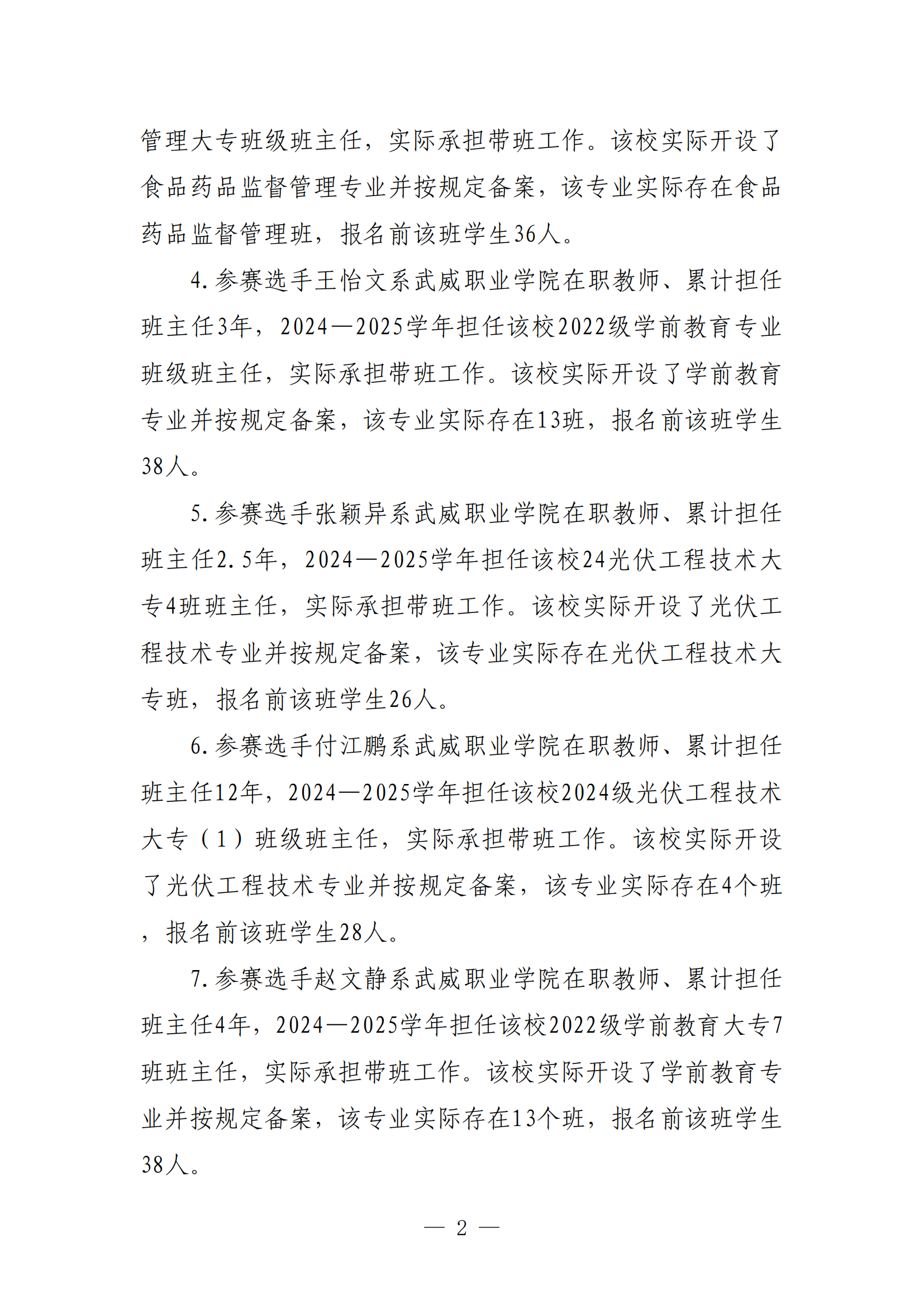 2025年全省職業(yè)院校技能大賽班主任能力比賽武威職業(yè)學院參賽選手信息公示
