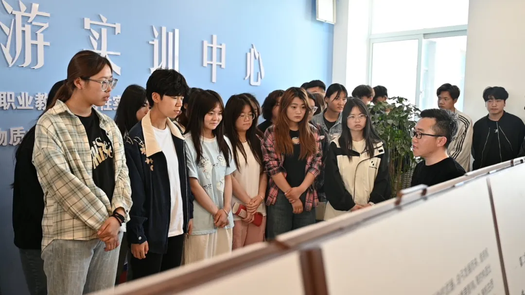 專題講座結(jié)束后,趙啟杰和同學們一同來到室外展區(qū),為師生們現(xiàn)場講解“世俗·往生——武威市文物考古研究所藏漢晉墓葬出土文物展”主題展覽。趙啟杰以豐富的考古學知識和生動的語言,將展板上的文物圖片與講座內(nèi)容有機結(jié)合,不僅深化了大家對漢晉涼州人衣食住行的理解,還引申出許多新的歷史文化知識。這種理論講解與展板展示相結(jié)合的方式,讓抽象的歷史知識變得觸手可及。