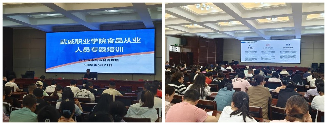 5月21日下午,學校邀請涼州區(qū)市場監(jiān)管局副局長汪大勇、西關(guān)街市場監(jiān)督管理所所長秦榮華開展食品安全專題培訓。學生食堂、超市、后勤服務樓管理人員和全體從業(yè)人員200余人參加培訓。培訓由后勤管理處處長占發(fā)禹主持。