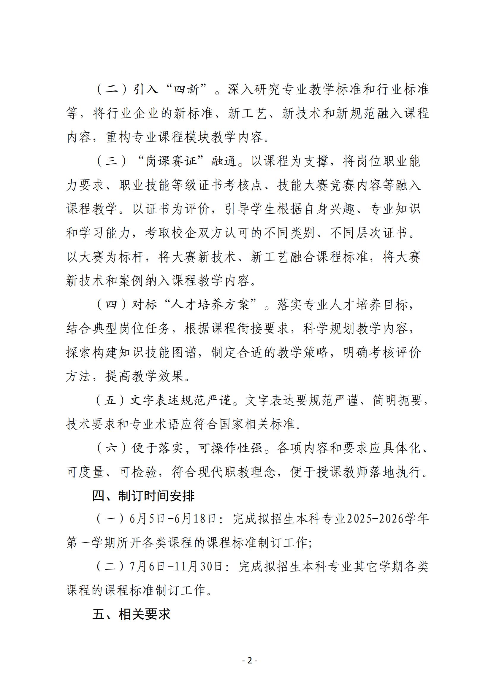 關(guān)于做好2025級職業(yè)本科專業(yè)課程標(biāo)準(zhǔn)制訂工作的通知