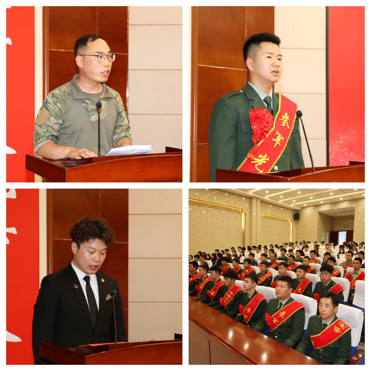 活動現(xiàn)場為2024—2025學(xué)年退役復(fù)學(xué)大學(xué)生舉行了歡迎儀式,并為他們頒發(fā)“退役復(fù)學(xué)軍人榮譽(yù)證牌”。退役復(fù)學(xué)大學(xué)生代表、醫(yī)學(xué)技術(shù)學(xué)院2024級針灸推拿大專(2)班周榮臻同學(xué)講述了軍旅生涯的磨煉和成長感悟,并號召青年大學(xué)生積極報名參軍;2025年應(yīng)征報名大學(xué)生代表、藥學(xué)院2024級藥學(xué)大專(1)班劉鑫同學(xué)宣讀了參軍入伍倡議書;駐武部隊(duì)優(yōu)秀大學(xué)生軍官代表符東洋少校分享了自己在部隊(duì)的成長經(jīng)歷。