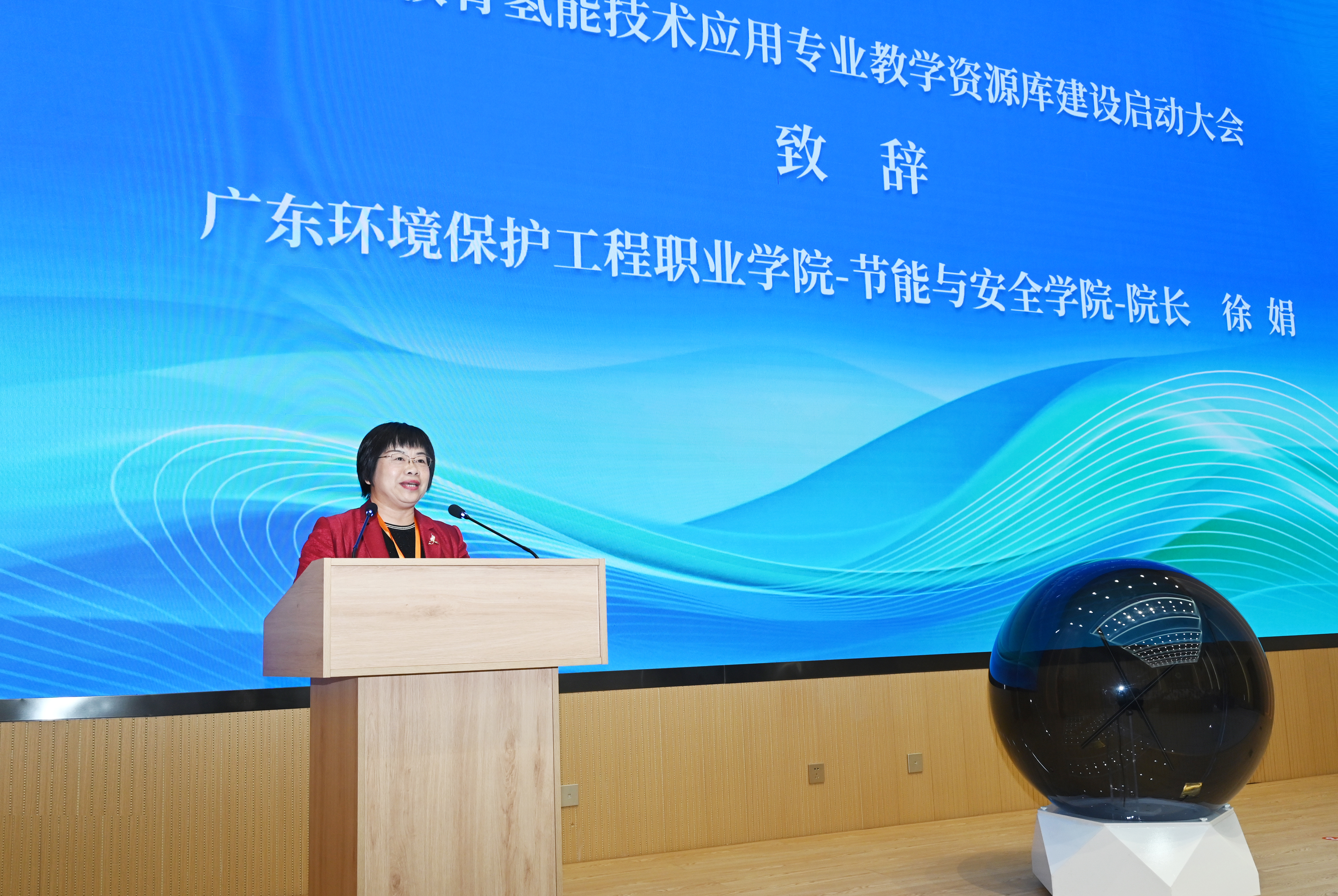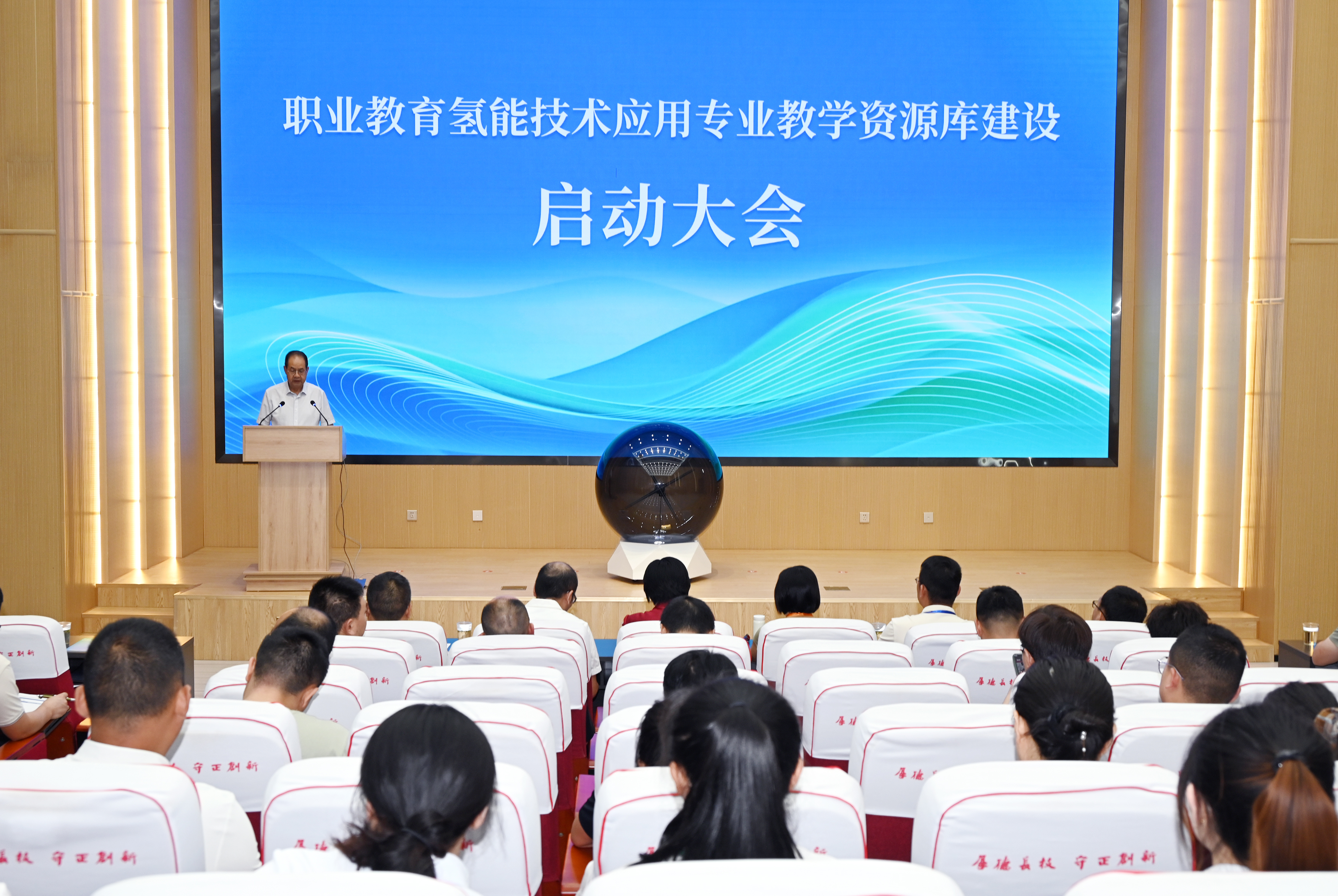 在參會領(lǐng)導(dǎo)和嘉賓的共同見證下,舉行了職業(yè)教育氫能技術(shù)應(yīng)用專業(yè)教學(xué)資源庫建設(shè)啟動儀式。隨著啟動球的點(diǎn)亮,標(biāo)志著資源庫建設(shè)正式啟動。