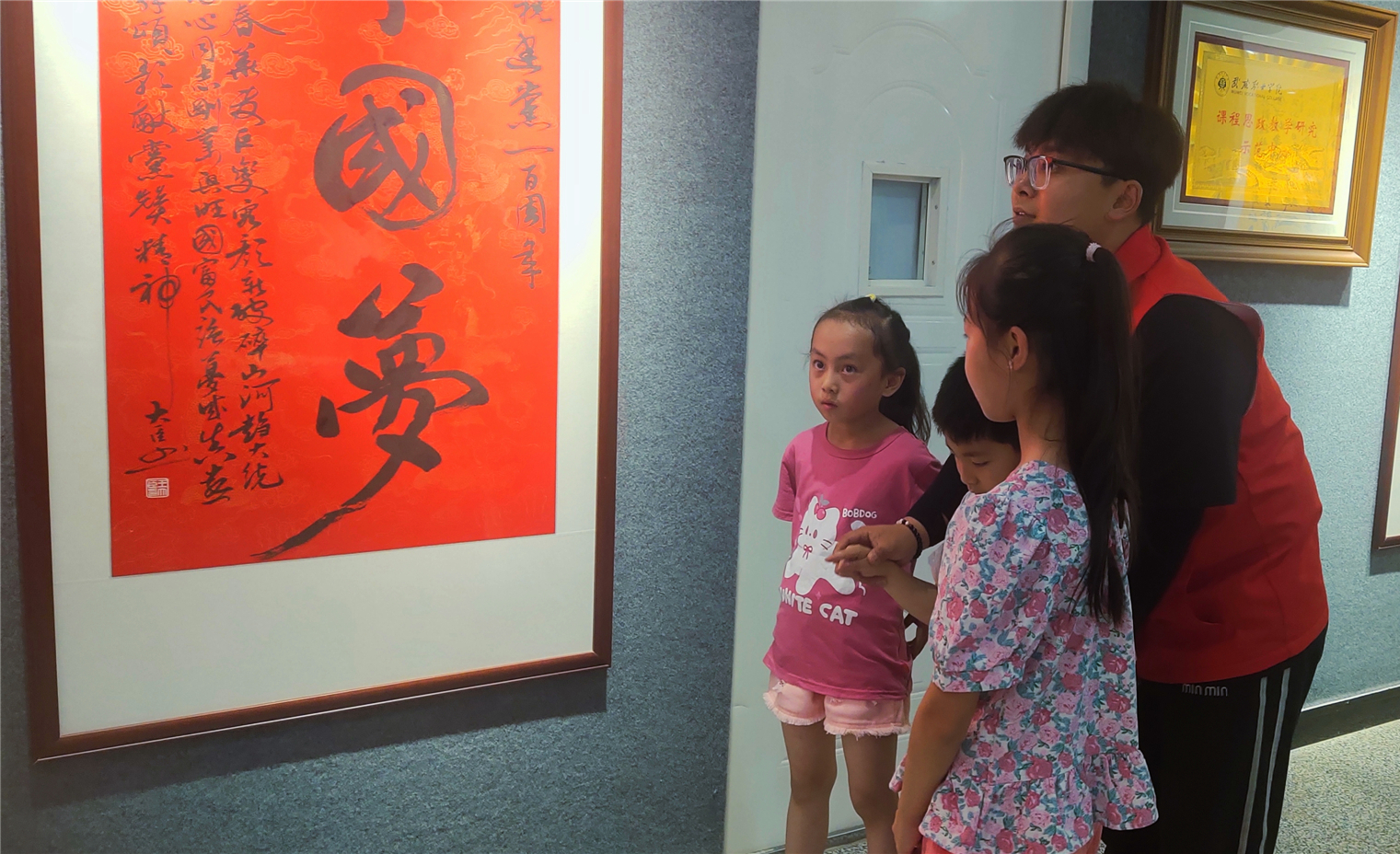 當(dāng)小朋友們走進紅色文化藝術(shù)館,一幅幅絢麗多彩的文化長卷在眼前展開。在志愿者帶領(lǐng)下,他們輕聲誦讀書法作品,體會文字哲理,感受中國傳統(tǒng)書法藝術(shù)獨特魅力,在心靈深處種下熱愛傳統(tǒng)文化的種子。