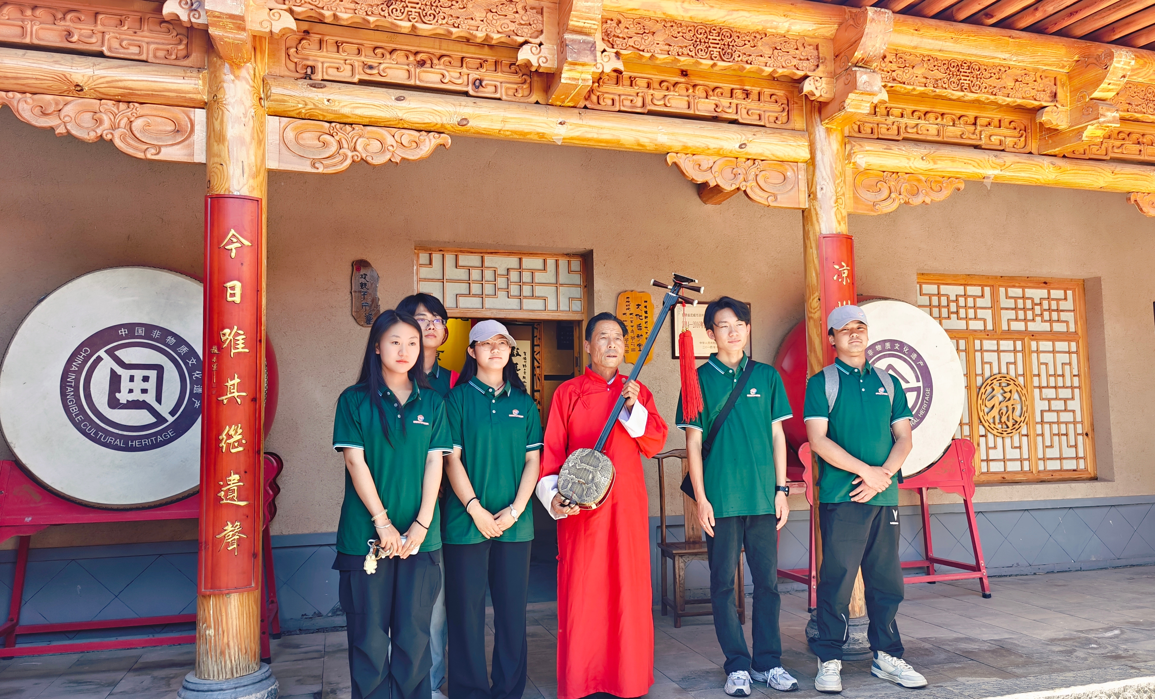 非遺民俗文化館當(dāng)天化身成為一座流動(dòng)的非遺課堂,實(shí)踐團(tuán)成員們圍坐在古樸的庭院中,聚精會(huì)神地聆聽(tīng)當(dāng)?shù)刭Y深賢孝藝人董永虎老師深情演繹的經(jīng)典曲目。老藝人蒼勁而富有穿透力的嗓音,伴著三弦琴弦的顫動(dòng),將一段段蘊(yùn)含忠孝節(jié)義、勸人向善的古老故事娓娓道來(lái)。那飽經(jīng)歲月洗禮的曲調(diào),仿佛穿越時(shí)空,在青磚黛瓦間回蕩,讓在場(chǎng)的每一位學(xué)子都深深沉浸其中,體味著這門古老說(shuō)唱藝術(shù)所承載的歷史重量與人文溫度。