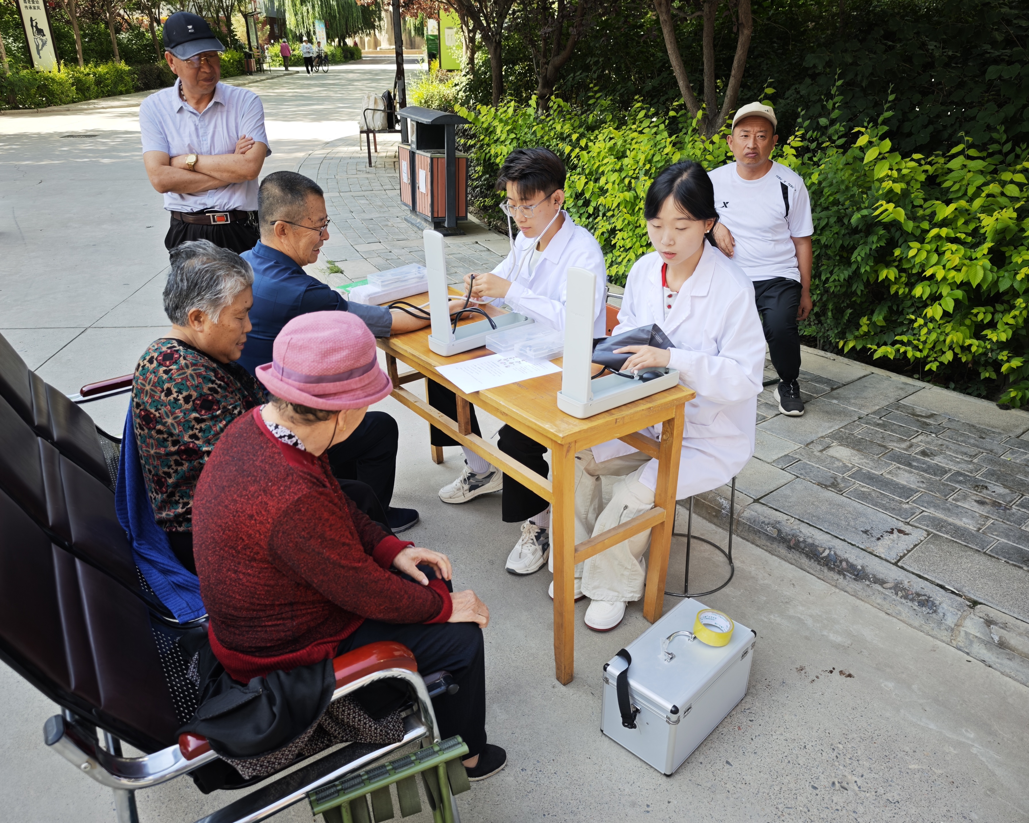在指導老師的帶領(lǐng)下,志愿者們走進武威市涼州區(qū)窯溝村,他們手持血壓計為村民細心測量,指尖傳遞著溫暖的守護。針對常見的高血壓問題,志愿者們將書本的醫(yī)學知識化作“少鹽多醋常走動”的貼心叮嚀;艾灸棒在老人膝蓋處揮舞,老人們微闔雙眼,皺紋間舒展開寧靜的笑意。志愿者精心準備了蘊含中藥智慧的五色香囊,讓預防保健的種子在老人們心中生根發(fā)芽。