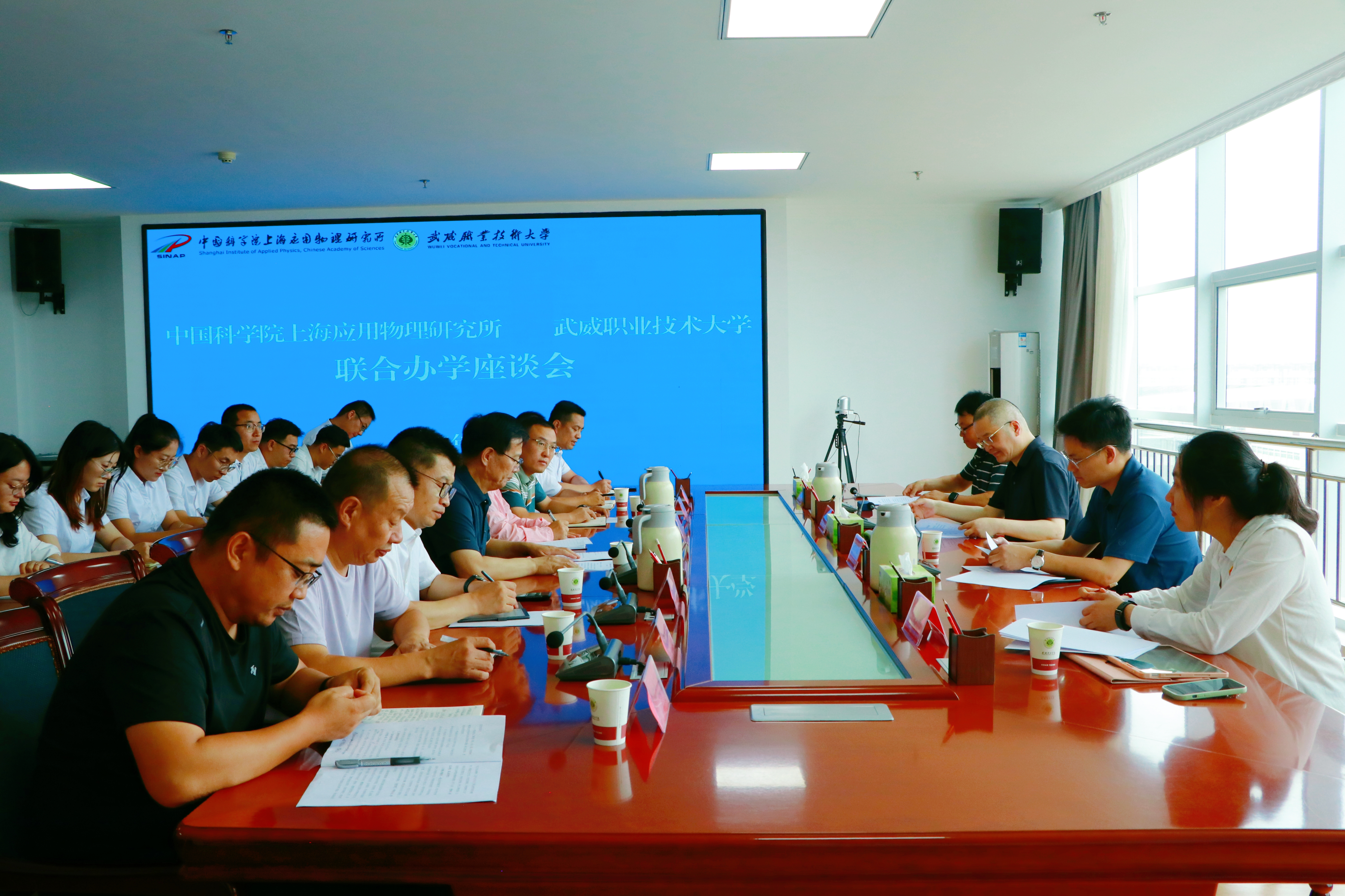 武威職業(yè)技術(shù)大學(xué)相關(guān)部門及學(xué)院負(fù)責(zé)同志,中科低碳新能源技術(shù)學(xué)院教師代表參加座談會。