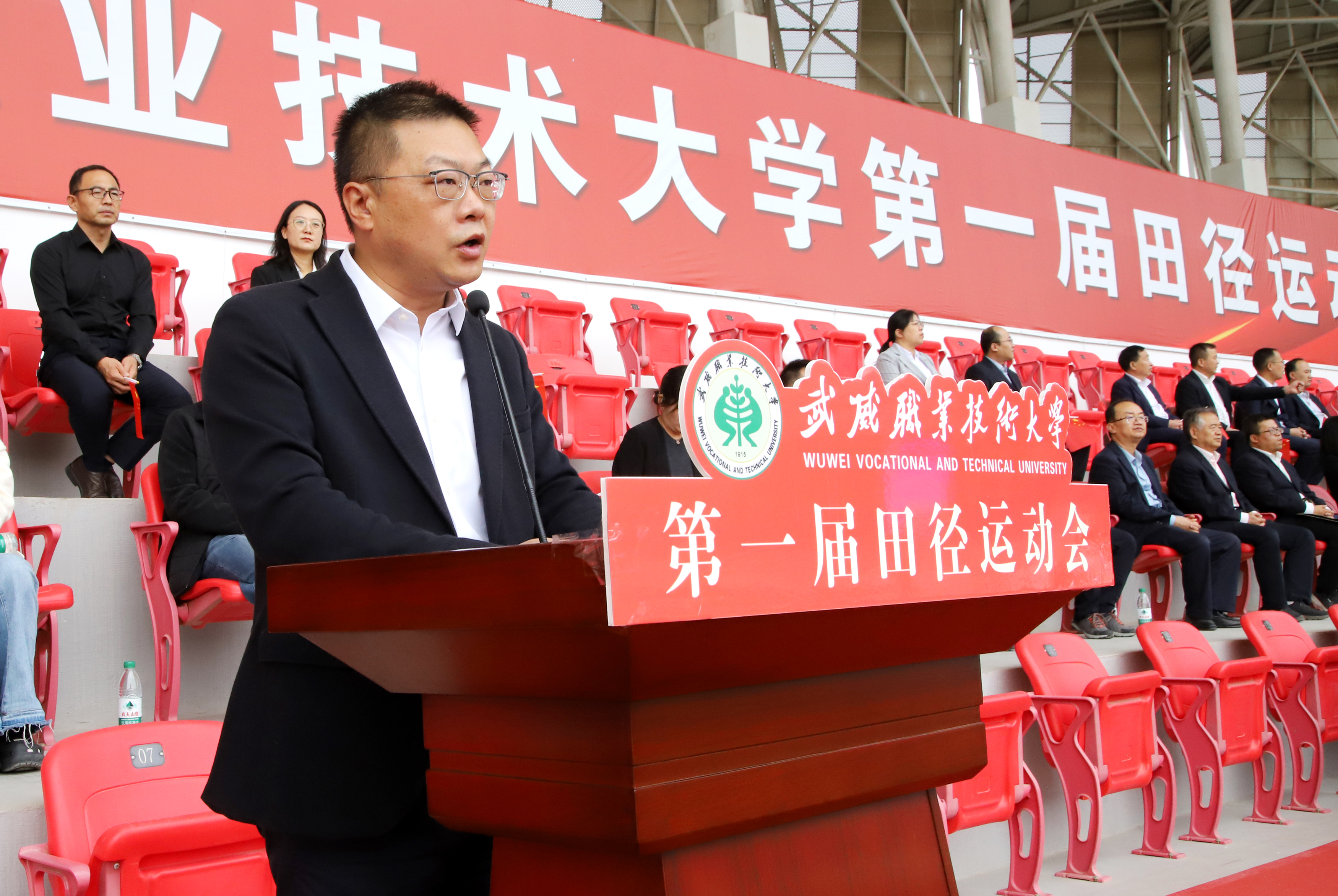 王宏宣布武威職業(yè)技術(shù)大學第一屆田徑運動會開幕。