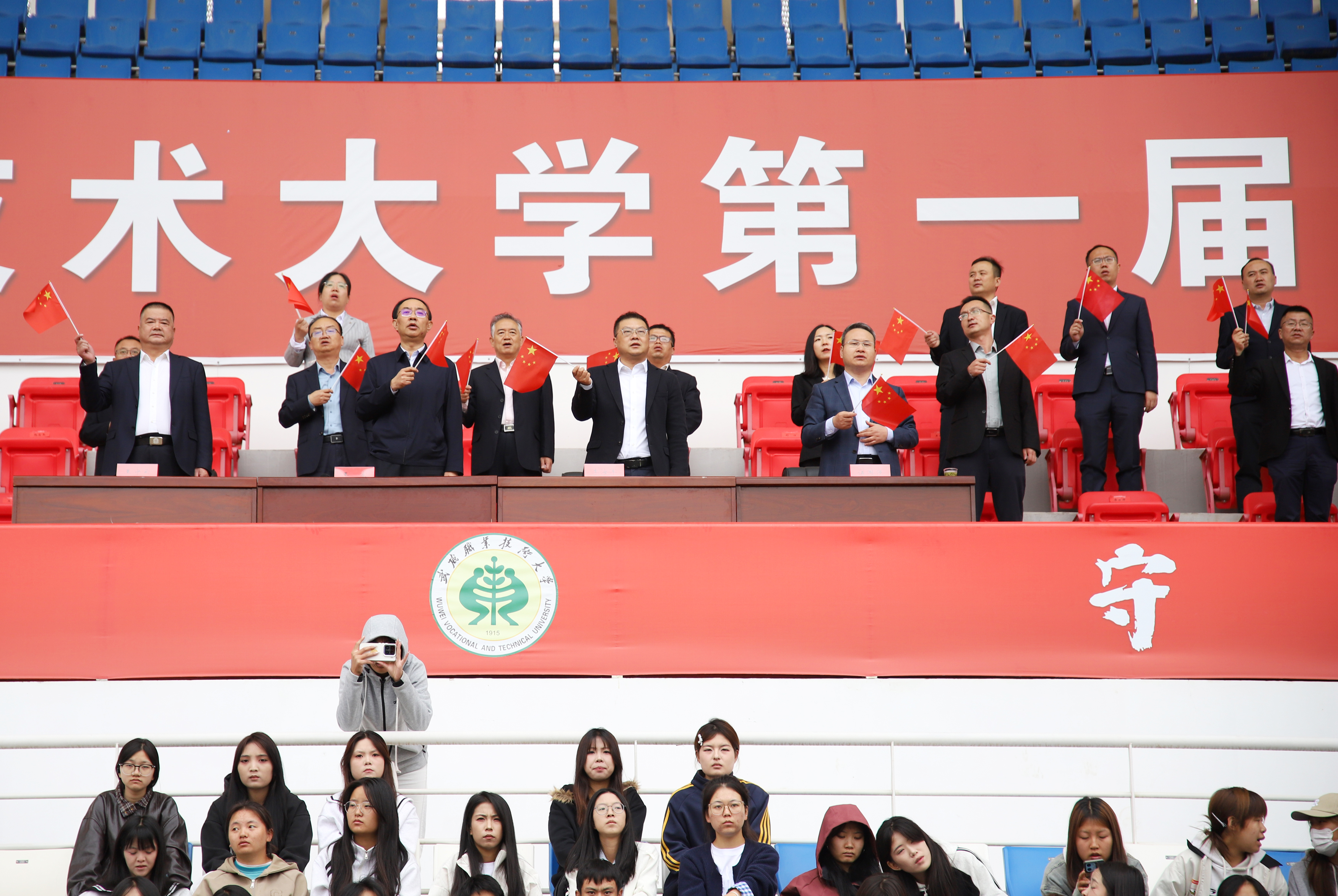 金秋的校園,青春逐夢,活力飛揚。9月28日—30日,武威職業(yè)技術(shù)大學第一屆田徑運動會在體育場隆重舉行。學校黨委書記王宏,校長李海軍,黨委委員、副校長王守云、伍國強及學校各部門、學院負責同志出席開幕式。王守云主持開幕式。