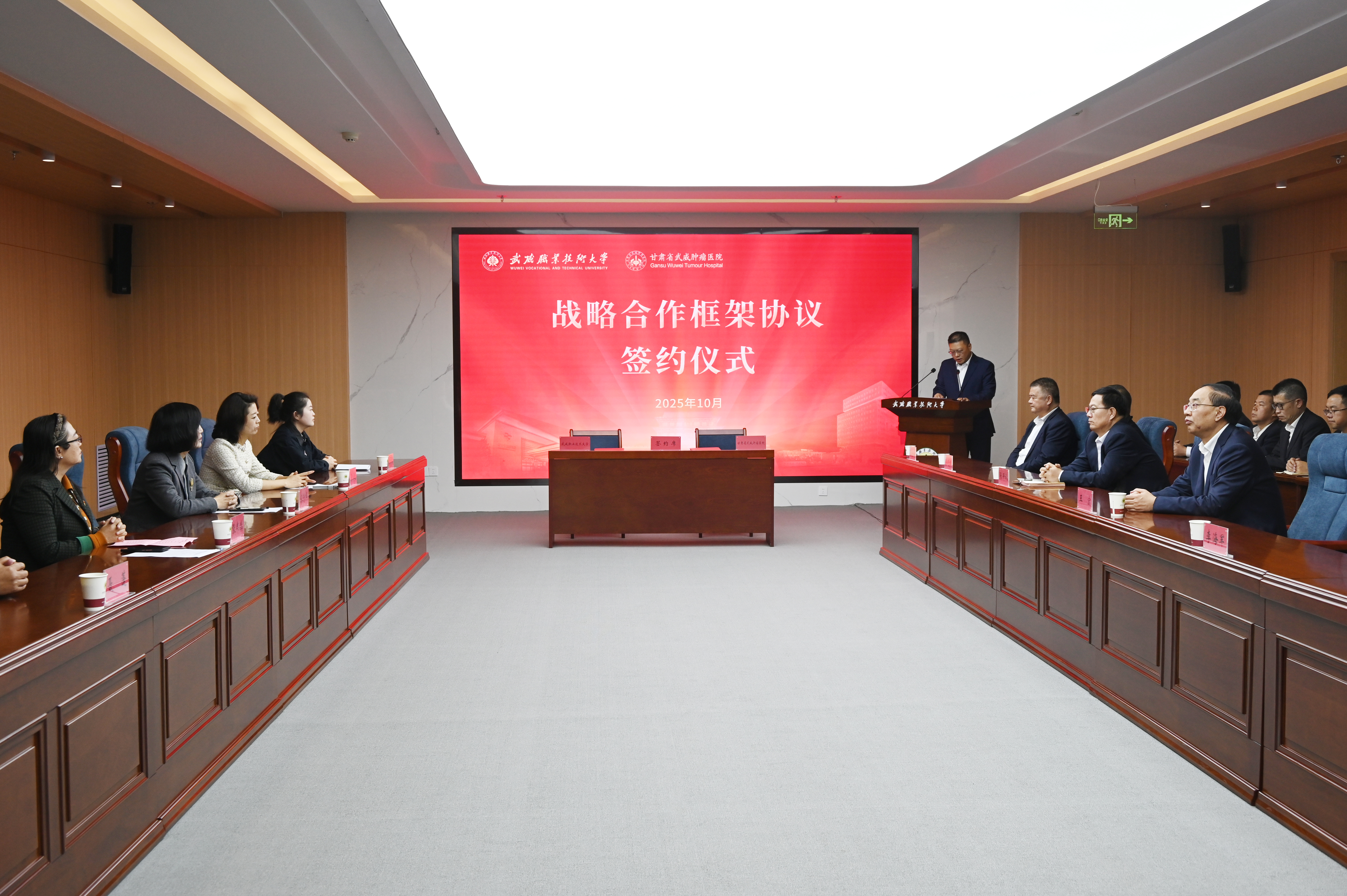 10月12日下午,武威職業(yè)技術(shù)大學與甘肅省武威腫瘤醫(yī)院舉行戰(zhàn)略合作框架協(xié)議簽約儀式,標志著雙方合作進入新階段。這是落實“健康中國”戰(zhàn)略、推動醫(yī)療與教育深度融合的重要舉措,將助力“健康甘肅”建設(shè)和武威市“兩擎牽引、五極迸發(fā)”發(fā)展格局。