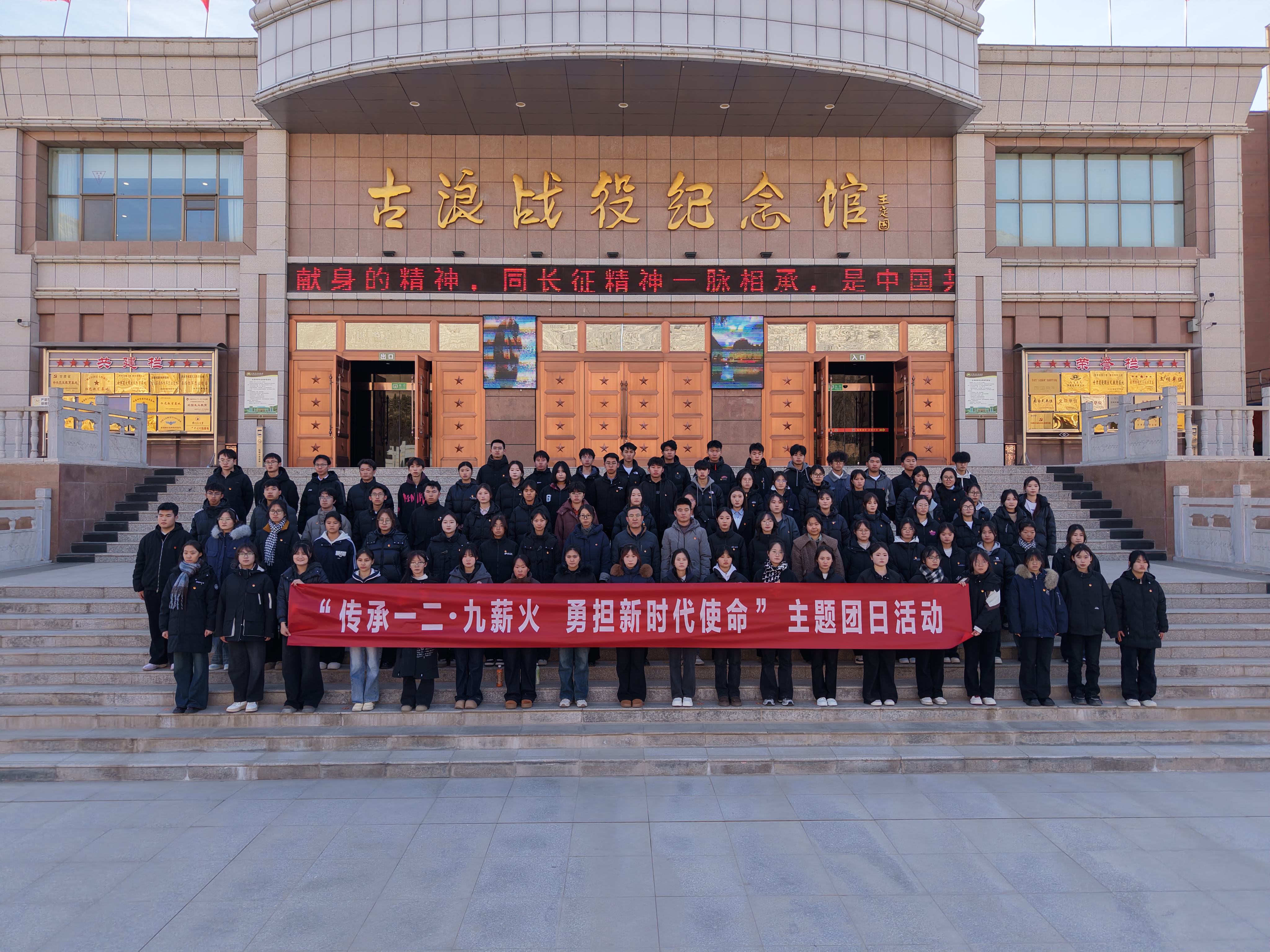 為深切緬懷革命先烈,弘揚(yáng)愛(ài)國(guó)主義精神,加強(qiáng)團(tuán)員青年思想政治引領(lǐng),12月6日,學(xué)校團(tuán)委在古浪戰(zhàn)役紀(jì)念館組織開展紀(jì)念“一二 · 九”運(yùn)動(dòng)主題團(tuán)日活動(dòng)暨新發(fā)展團(tuán)員集中入團(tuán)儀式。學(xué)校團(tuán)委全體干部,2025年下半年新發(fā)展團(tuán)員代表,團(tuán)學(xué)干部代表共計(jì)100人參加了活動(dòng)。