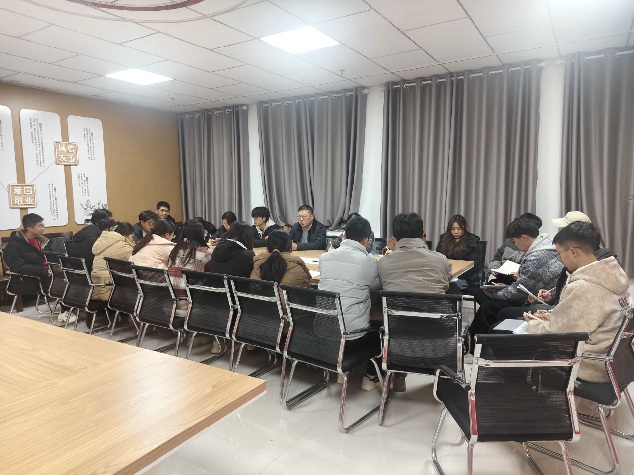 為切實(shí)開展“五進(jìn)”“兩參加”“一講座”活動(dòng),近日,校長(zhǎng)李海軍深入中科低碳新能源技術(shù)學(xué)院2025級(jí)新能源發(fā)電工程技術(shù)本科2班,通過講授思政課、進(jìn)課堂聽評(píng)課、參與主題班會(huì)、開展面對(duì)面座談交流等多種形式,與學(xué)生深度互動(dòng),傳遞育人溫度。