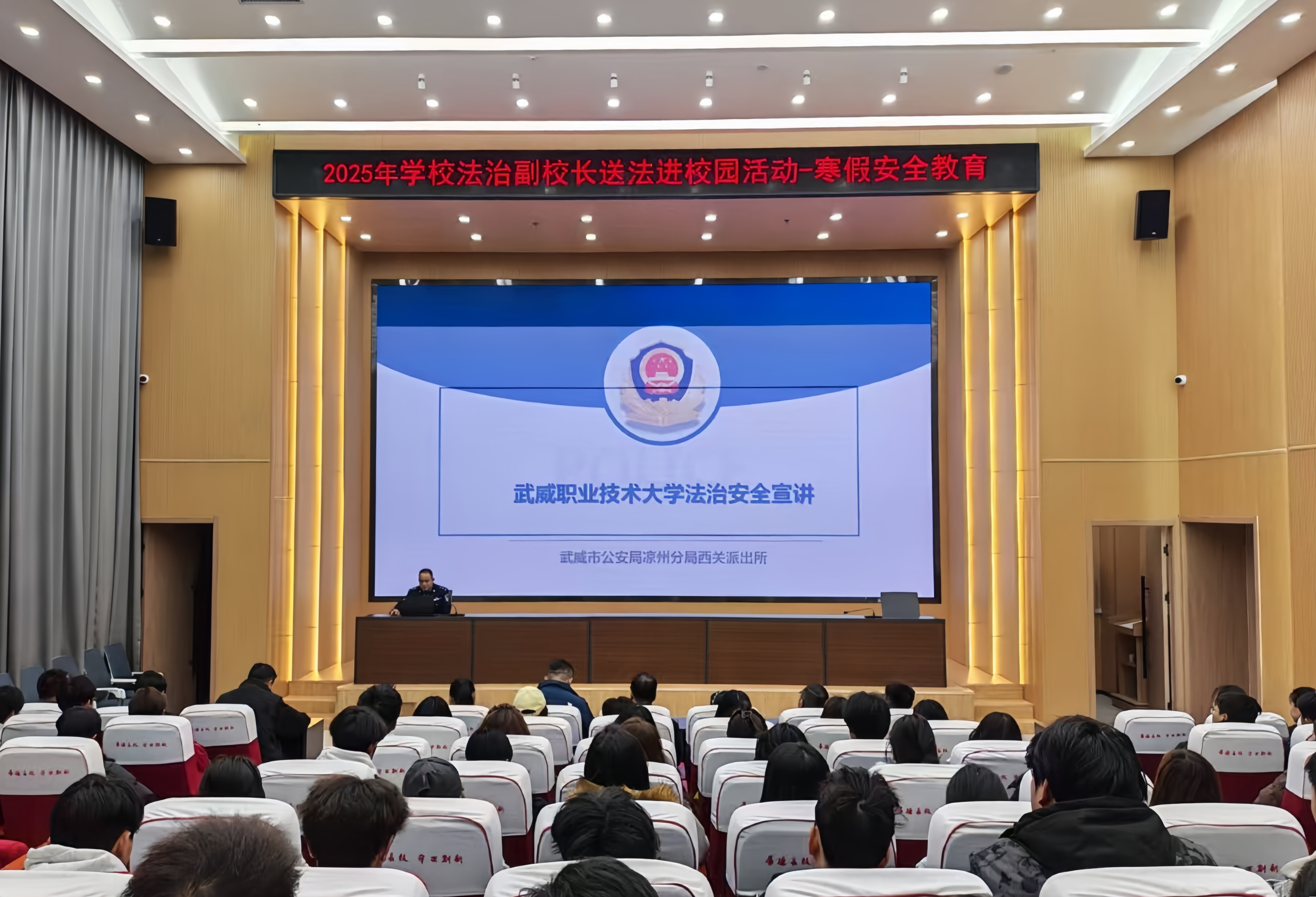宣講中,法治副校長(zhǎng)結(jié)合大學(xué)生群體特點(diǎn)與校園常見涉法涉安全案例,圍繞一般治安事件、防范電信詐騙、人身財(cái)產(chǎn)安全、交通安全四大主題展開詳細(xì)講解。針對(duì)毆打他人、盜竊、詐騙等12類校園及周邊高發(fā)治安案件,副校長(zhǎng)逐一剖析案件特征,精準(zhǔn)解讀《治安管理處罰法》等相關(guān)法律法規(guī),明確違法犯罪行為的法律后果,告誡同學(xué)們堅(jiān)守法律底線,切勿因一時(shí)沖動(dòng)釀成大錯(cuò)。